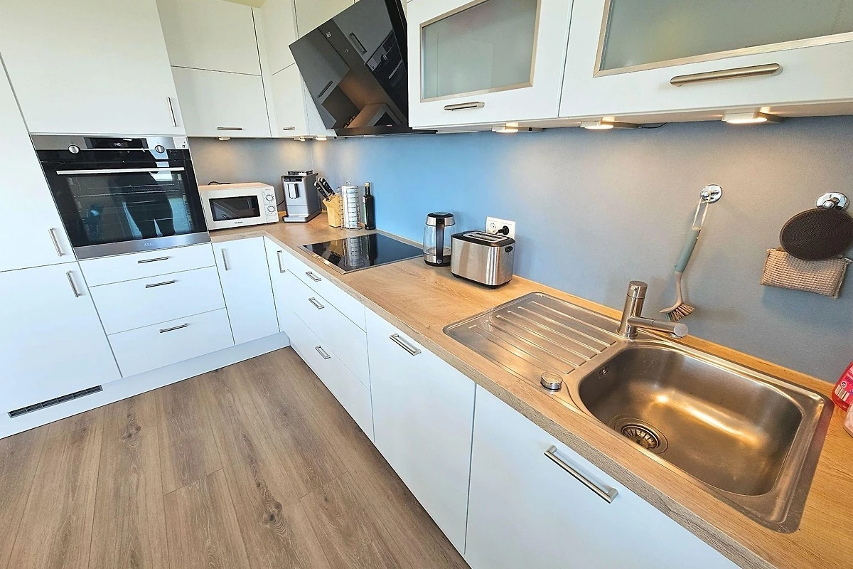 Die Ferienwohnung bietet einen beeindruckenden Meerblick, der zum Entspannen einlädt. Ein eigener Parkplatz sorgt für zusätzlichen Komfort und einfache Erreichbarkeit. Ideal für erholsame Tage am Strand, ist diese Wohnung der perfekte Rückzugsort für alle, die die Ruhe und Schönheit der Umgebung geniessen möchten, ohne auf moderne Annehmlichkeiten verzichten zu müssen.
