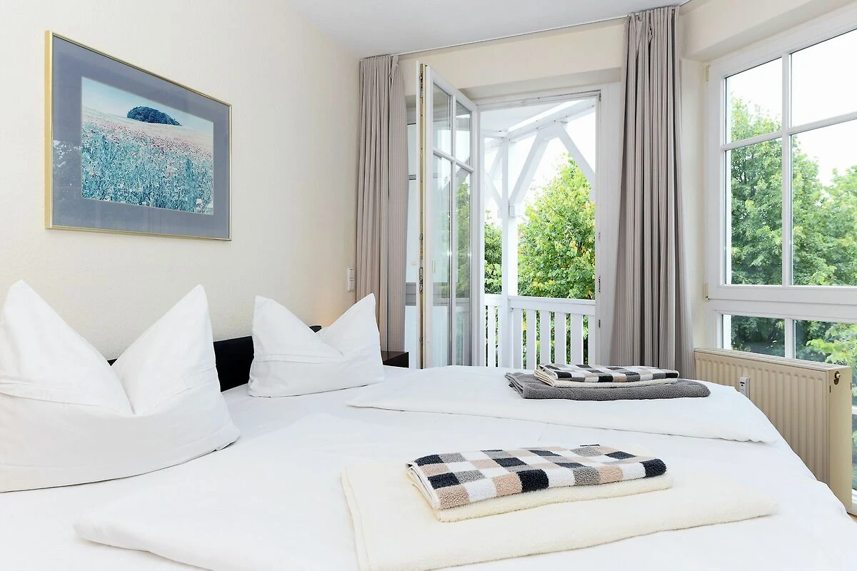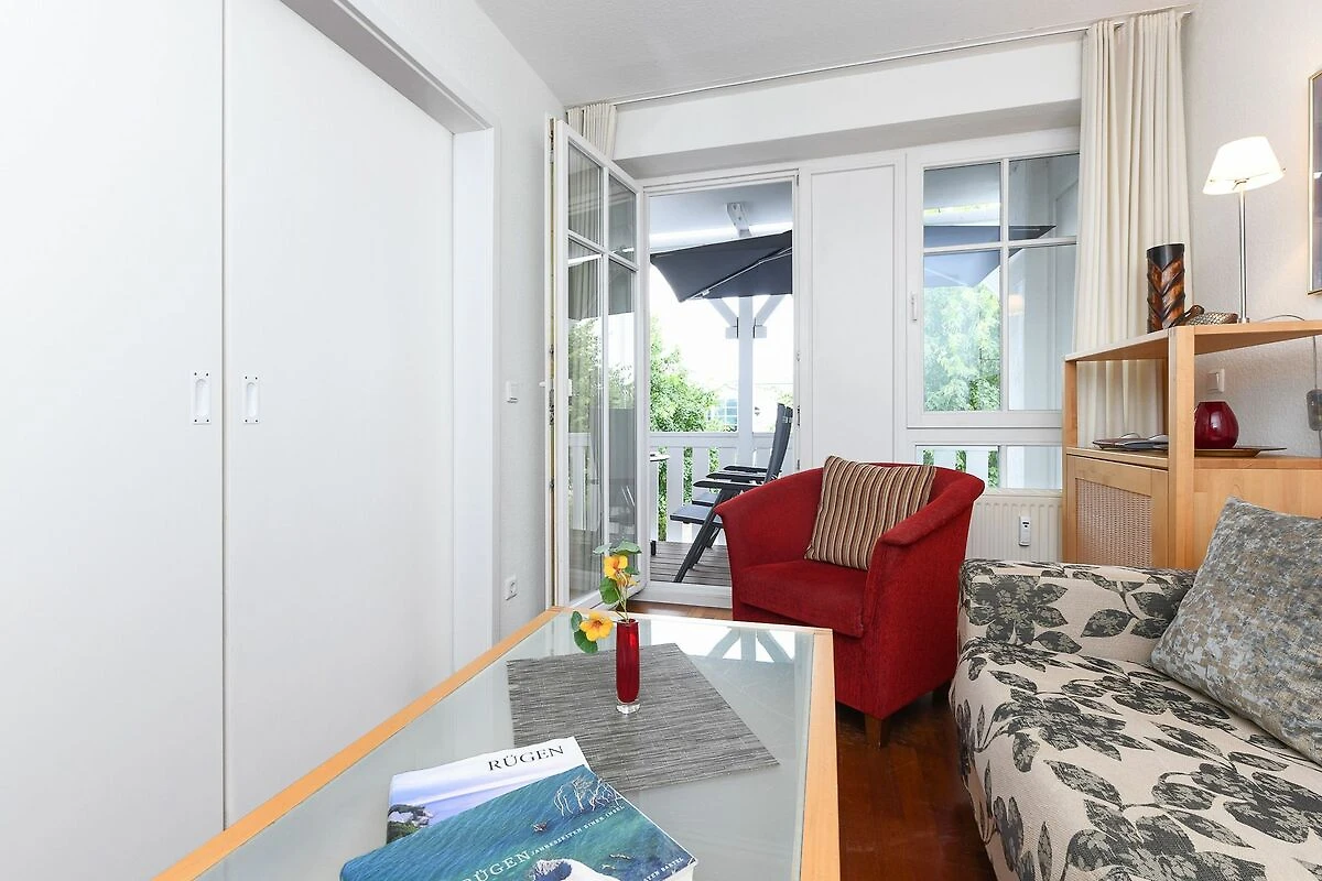 Die Ferienwohnung befindet sich in der Ferienwohnanlage Seepark Sellin, Residenz Having am Rande des Zentrums von Sellin.