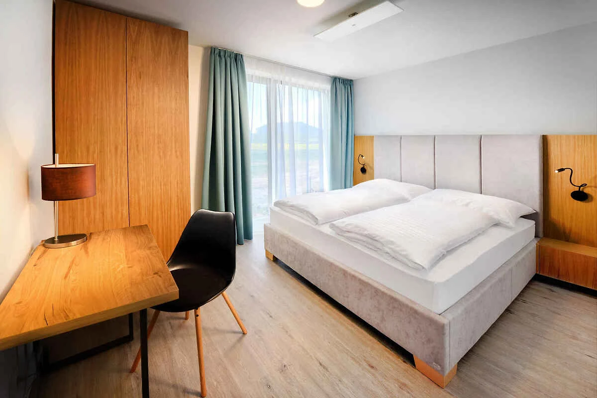 Der Eingang in Ihr Studio ist rollstuhlgeeignet. Wohn/Schlafzimmer mit Sitzecke und TV. Kochnische mit Kühlschrank, Mikrowelle, elektrischem Wasserkocher und Gas- oder E-Herd. Bad mit Dusche, WC und Föhn.