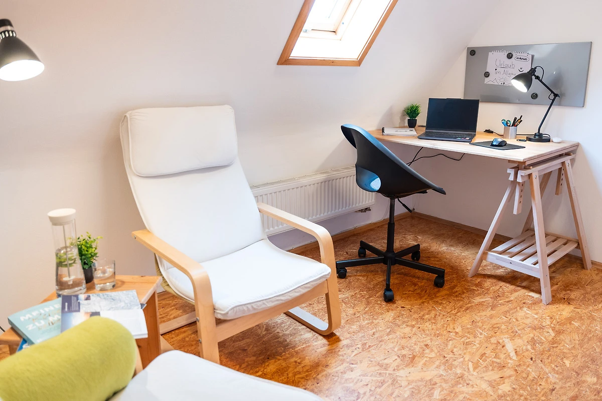 Flachbildschirm mit Amazon FireTV Stick, USB-(C) Ladebuchsen, Lese/Arbeitszimmer, Arbeitsplatz mit Bürostuhl, Gemeinschaftsspiele, Garten mitnutzung, Ausgewählte Infomaterialien für Region, Putzmaterialien, Sauna und Whirlpool (3 Personen - buchbar Vorort)