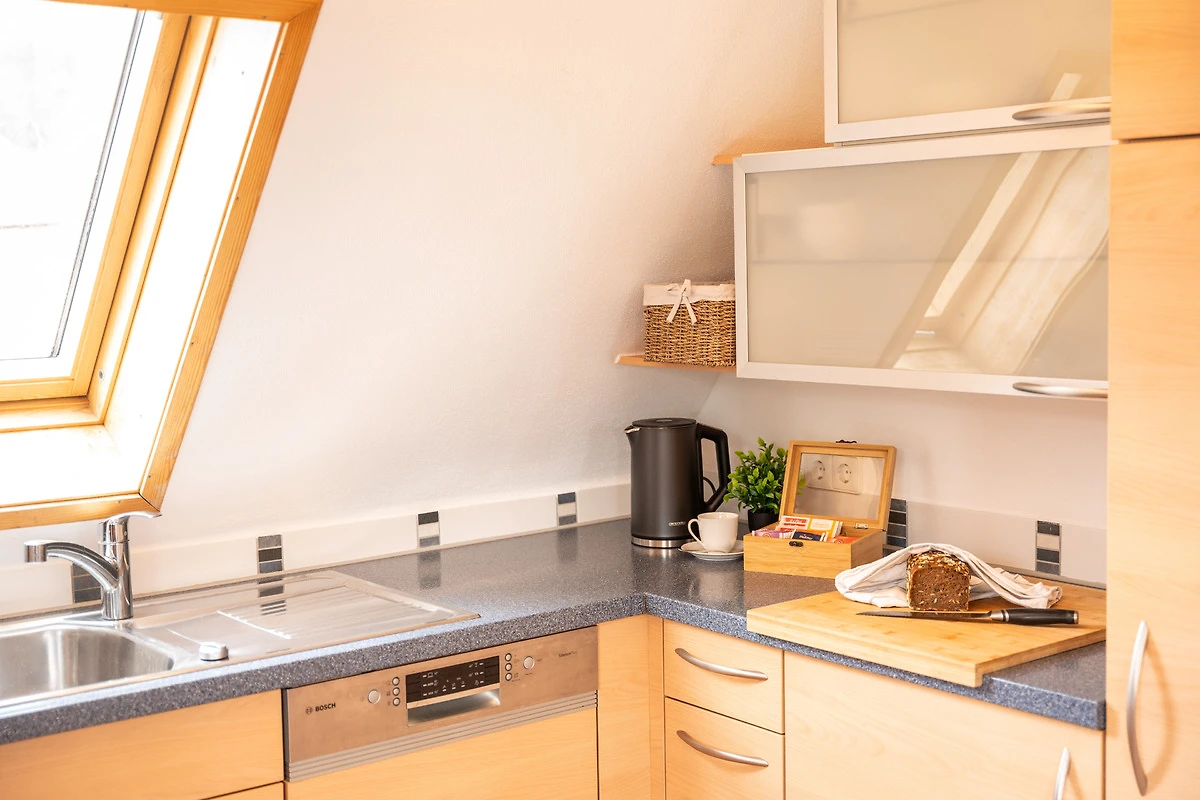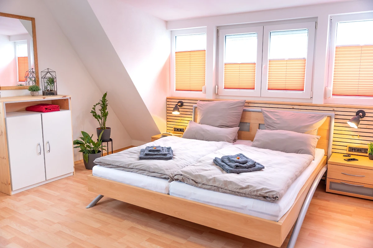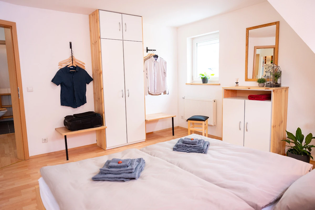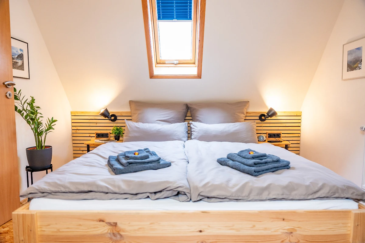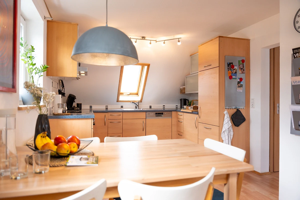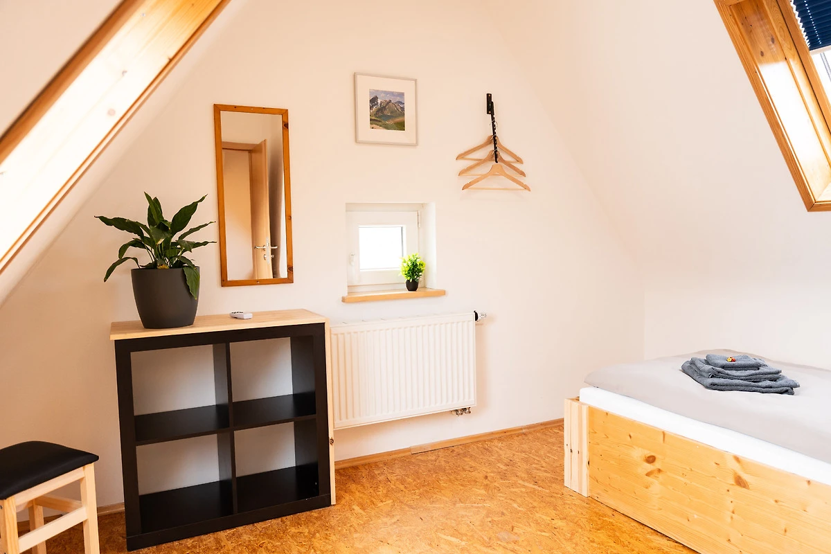 Unsere Unterkunft ist der ideale Rückzugsort für Einzelpersonen, Paare und Familien bis 5 Personen. Die modern eingerichtete Dachgeschosswohnung erstreckt sich über zwei Ebenen und bietet 3 Schlafzimmer: 1x Einzelbett und 2x Doppelbett. Der grosszügige Wohn- und Essbereich lädt zum Verweilen ein. Die Küche ist voll ausgestattet, einschliesslich einer Spülmaschine, und lässt keine Wünsche offen.