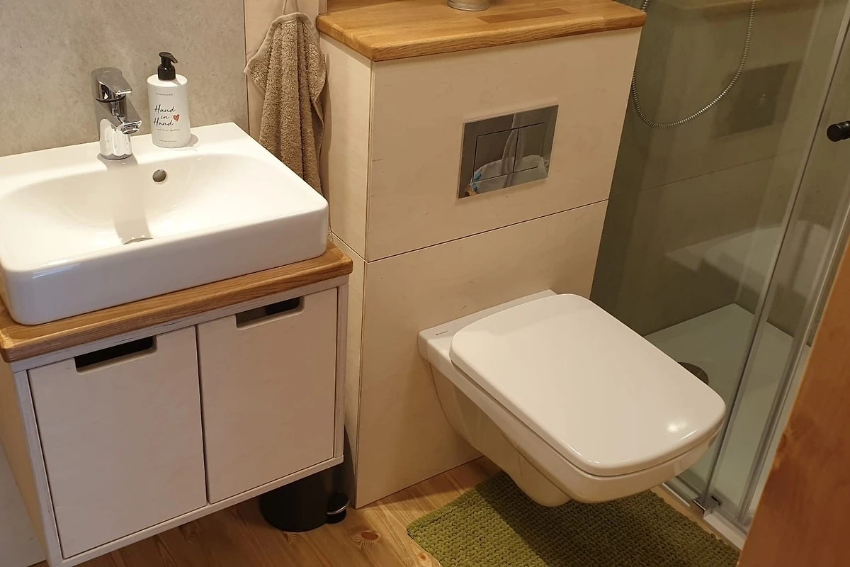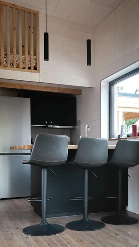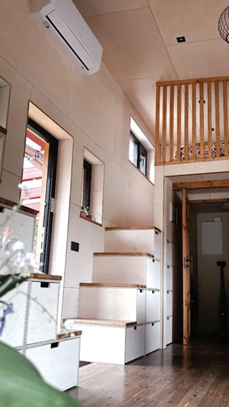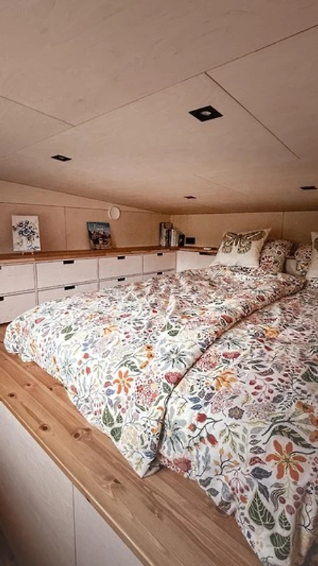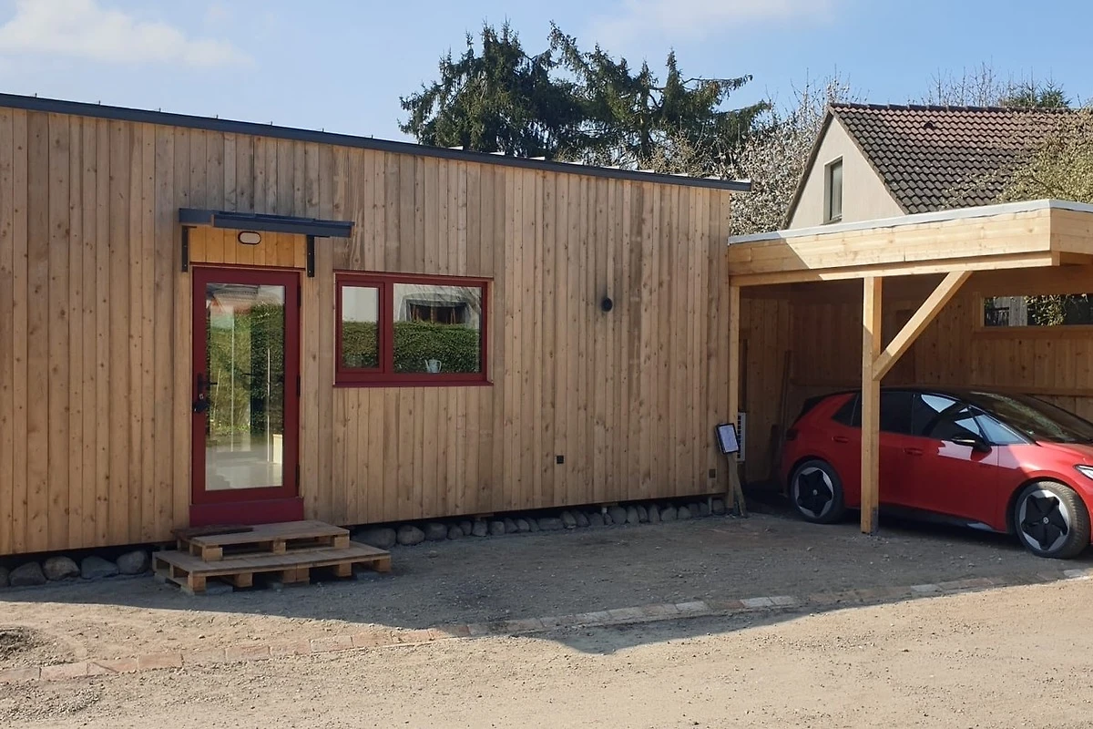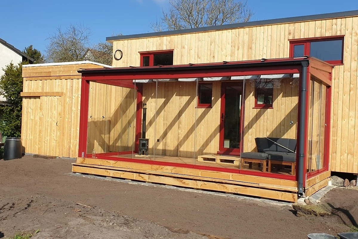 Mit viel Liebe zum Detail stilvoll eingerichtet, bietet das Tiny House auf kompakter Fläche ein durchdachtes Wohnkonzept für bis zu zwei Personen. Grosse Fenster und ein gemütlicher Wintergarten schaffen eine lichtdurchflutete Atmosphäre und eröffnen den Blick ins Grüne.