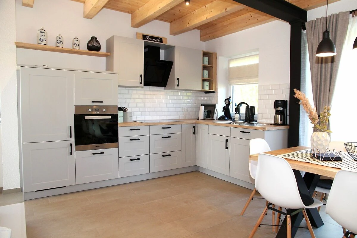 Das Haus begrüßt Sie mit einem modernen und offenen Wohnkonzept im gemütlichen Skandi-Stil. Die Wohnküche, u.a. ausgestattet mit Cerankochfeld, Backofen, Mikrowelle, Spülmaschine, Kühlschrank mit separatem Gefrierschrank, Kaffeemaschine, Senseo-Padmaschine, Wasserkocher, Toaster und Eierkocher, lädt zum gemeinsamen Kochen und Verweilen ein. Genießen Sie Ihre Mahlzeiten im gemütlichen Essbereich mit Blick durch die raumhohen Fenster auf das Siel oder im Freien auf der Terrasse, die mit Gartenmöbeln ausgestattet ist. Das Wohnzimmer bietet eine komfortable Sofaecke mit Sessel und TV (Zattoo Premium, kostenfrei) für entspannte Abende. Hier können Sie gemütliche Stunden verbringen und die Zeit mit Ihren Liebsten genießen.