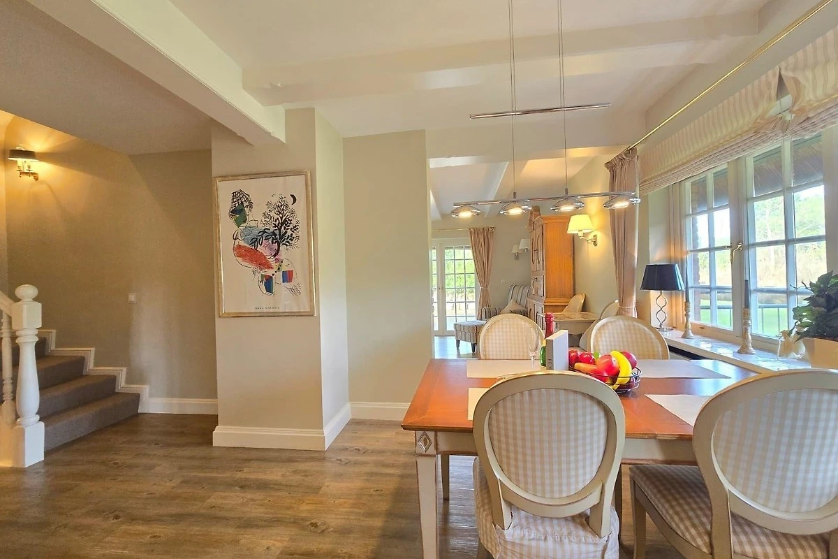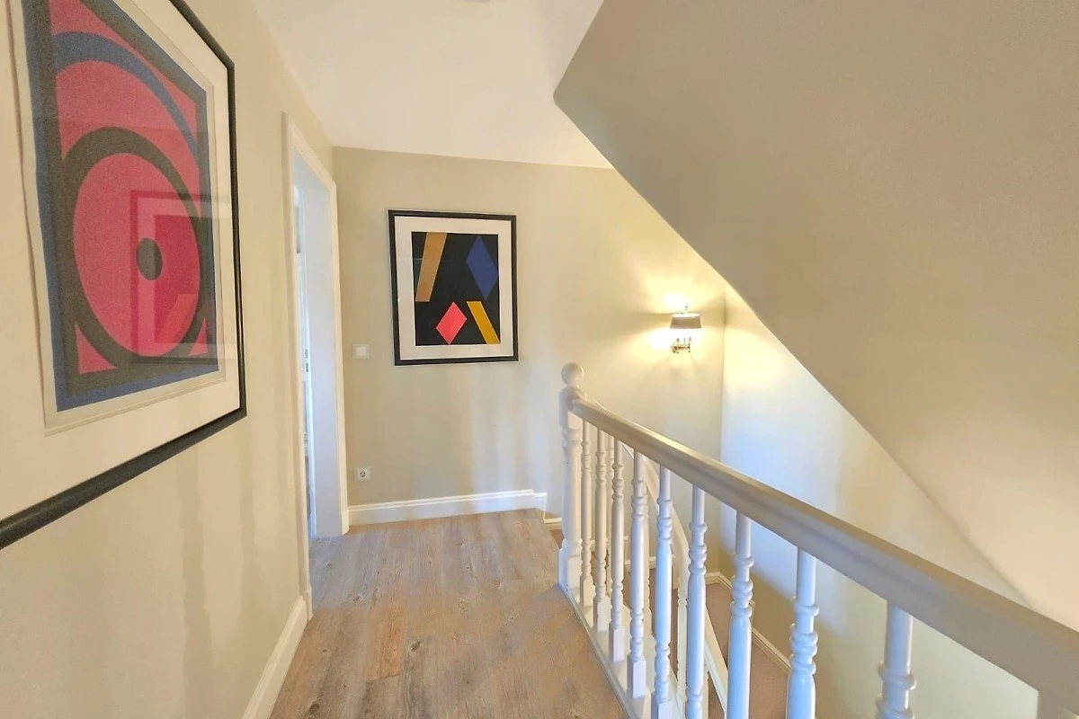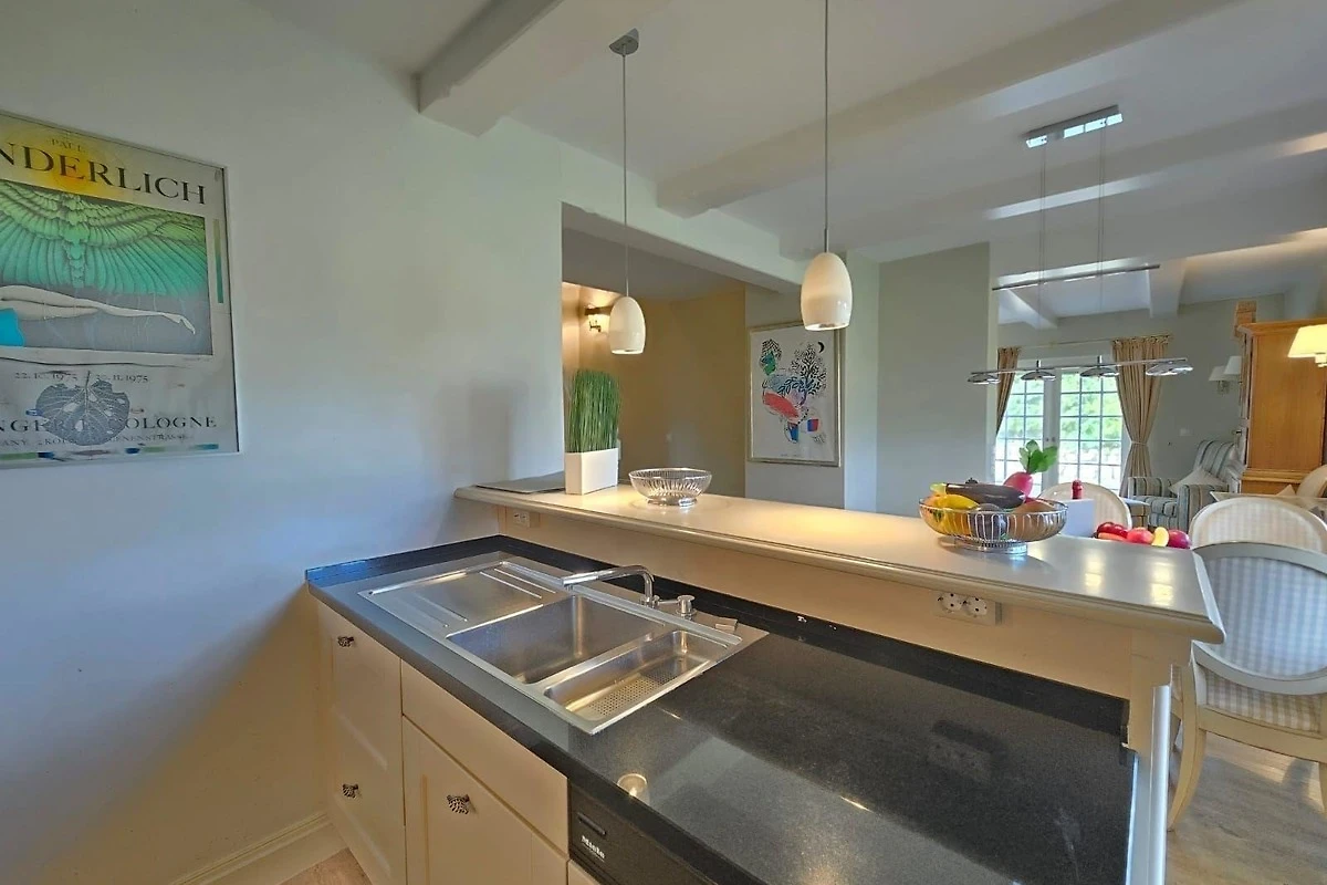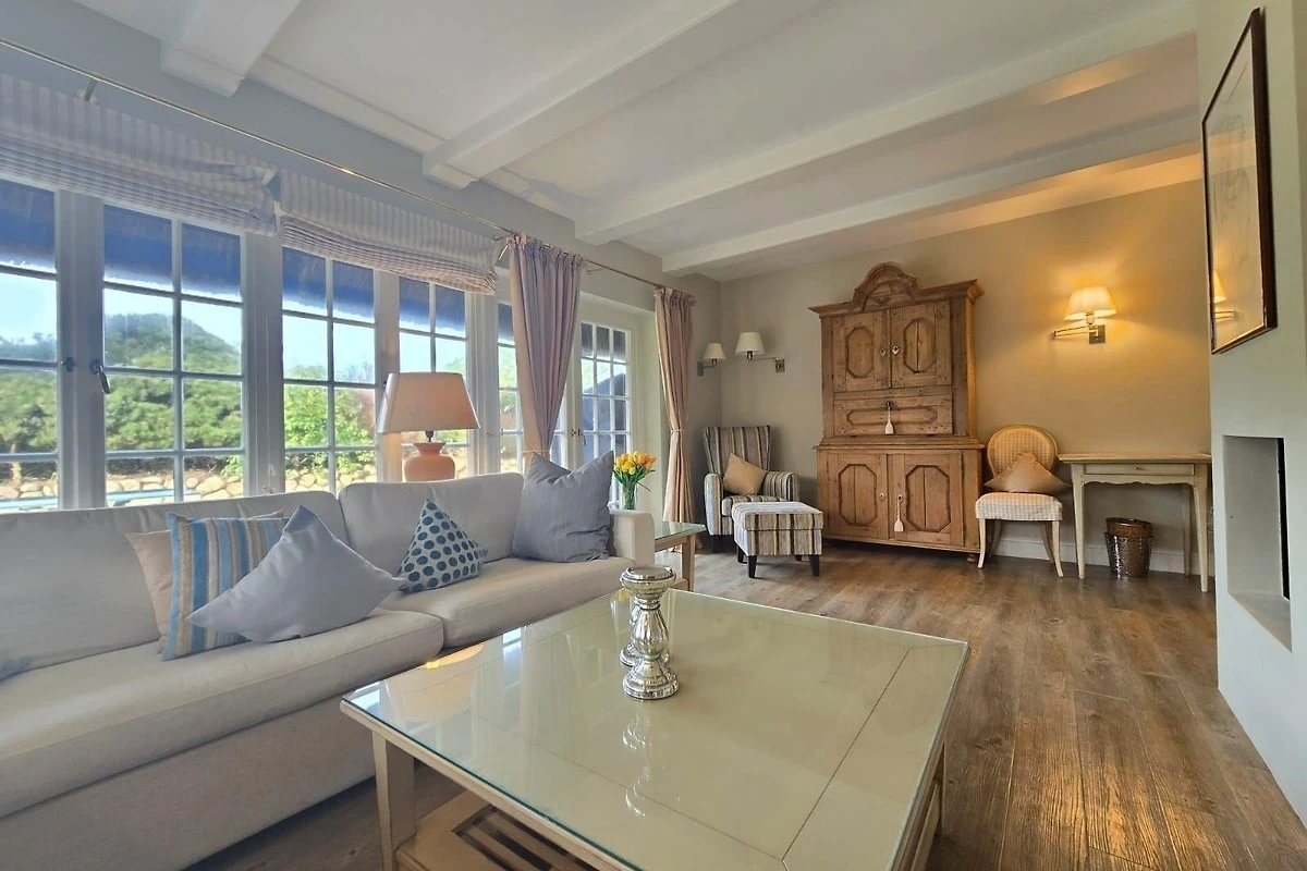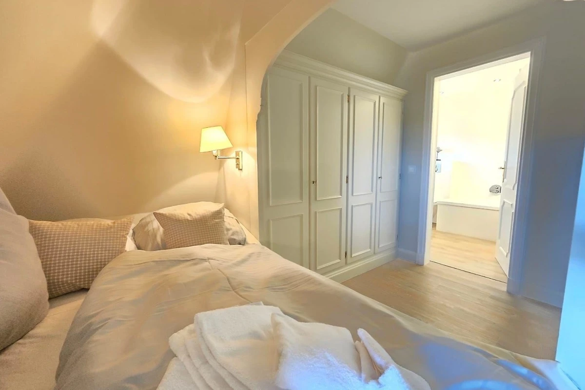 Die Ferienwohnung bietet komfortable drei Schlafzimmer mit jeweils einem Doppelbett und verfügt über drei moderne Badezimmer, die mit Duschbad und Badewanne ausgestattet sind. Die offene Küche lässt keine Wünsche offen und ist mit einem Elektro-/Gasherd, Geschirrspüler, Kühlschrank, Backofen, Mikrowelle und weiteren Annehmlichkeiten wie einer Kaffeemaschine und einem Toaster ausgestattet. Für Familien stehen zudem ein Kinderhochstuhl und ein Esstisch zur Verfügung. Der grosszügige Wohnbereich lädt mit einem Sofa und einem Kamin zur Entspannung ein. WLAN sorgt für eine durchgehende Internetverbindung. Zur Ausstattung gehören auch ein TV, Haartrockner, Bügeleisen und Staubsauger. Ein Parkplatz steht zur Verfügung und Allergiker können sich über eine geeignete Ausstattung freuen. Die Wohnung ist mit Rauchmeldern und einem Feuerlöscher gesichert. Ein Starterset an Reinigungsmitteln und Gewürzen rundet das Angebot ab.