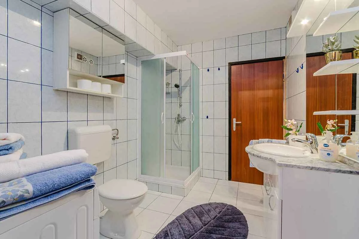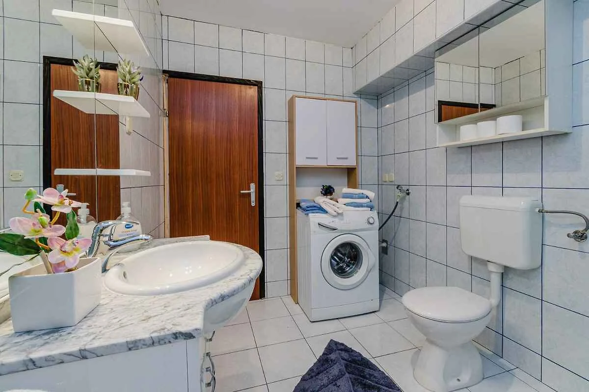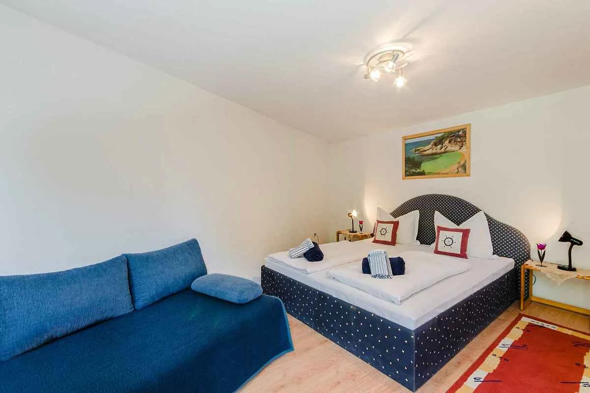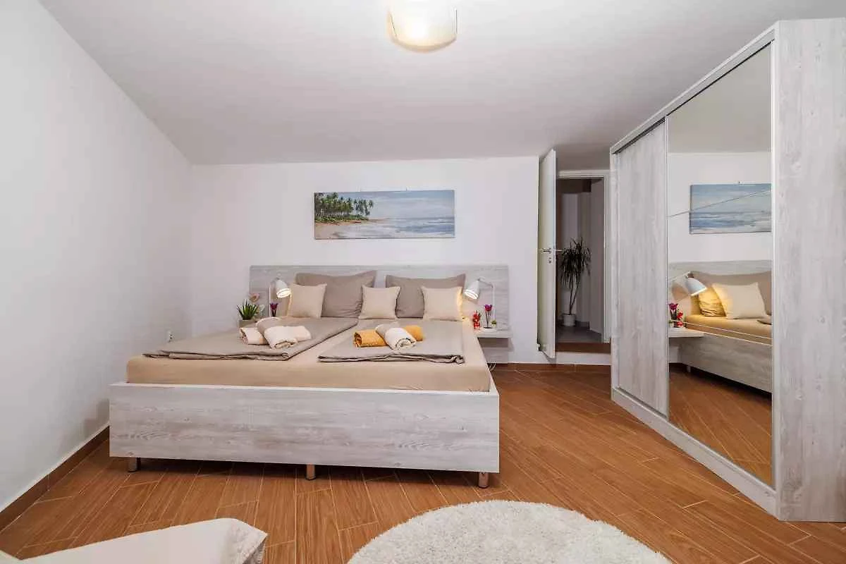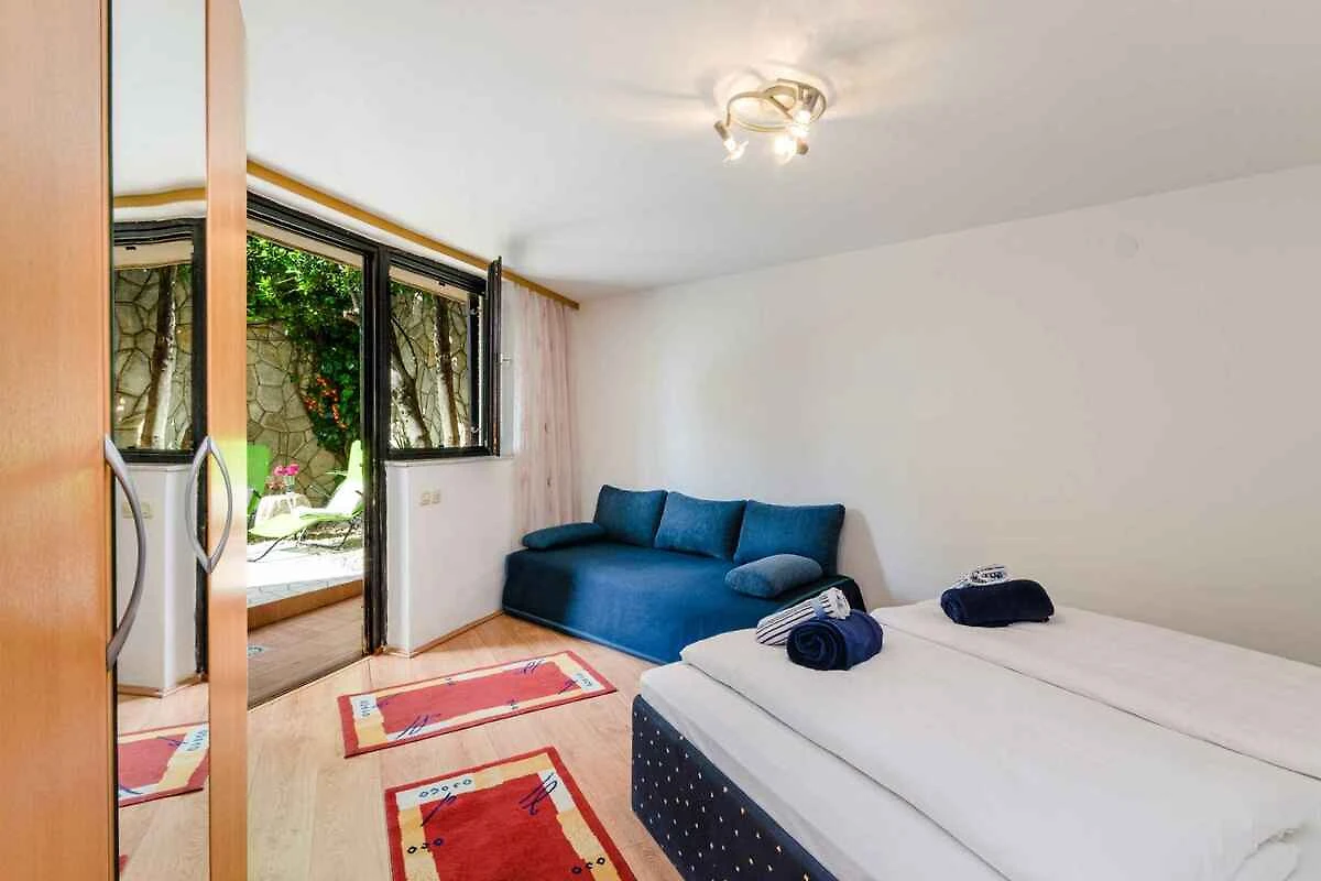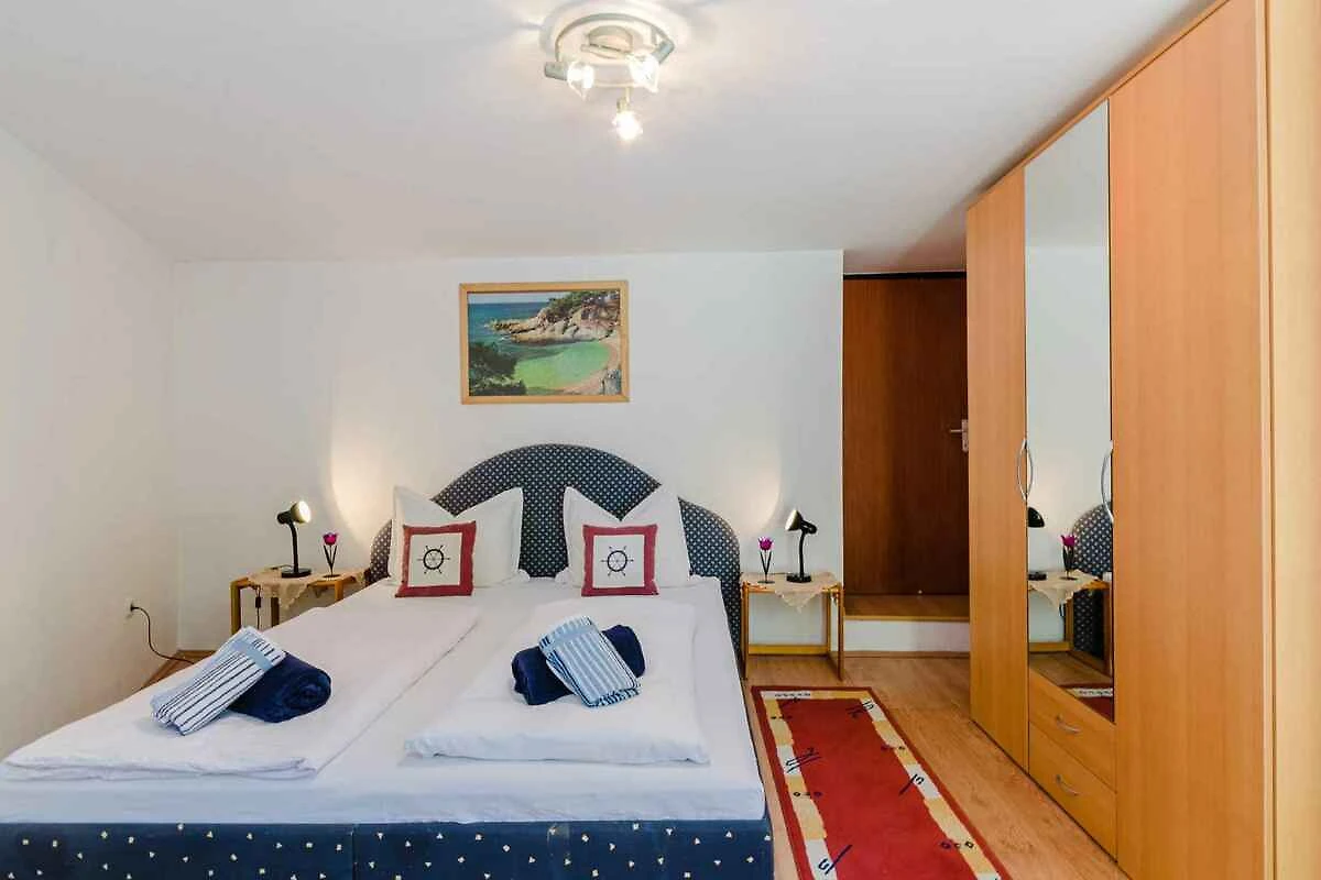 Selce. Die Ferienwohnung befindet sich auf einem Gartengrundstück. Die Zufahrt erfolgt über eine Nebenstrasse (asphaltiert). Parkplatz (für 1 Pkw) auf dem Grundstück.