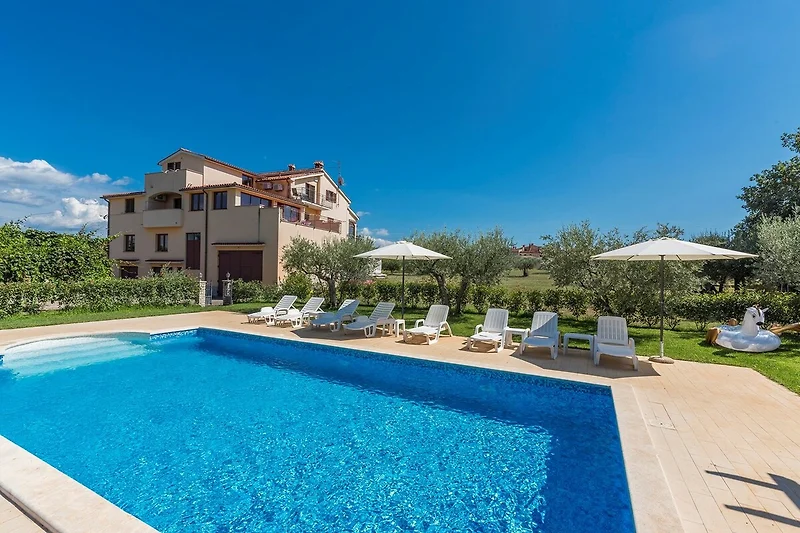 Einkauf 2 km, Restaurant 800 m, Ortszentrum 2 km. Flughafen in Pulas 61 km. Im Sommer: adriatisches Meer 4,6 km in Poreč (Strand 4,6 km in Poreč).