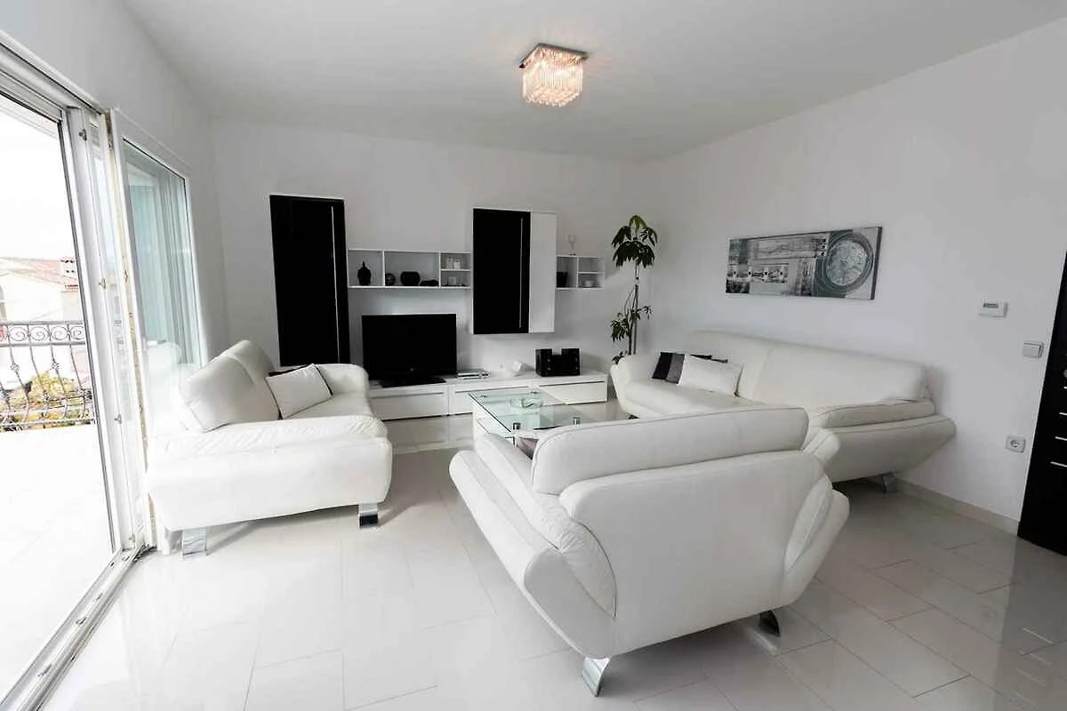 Selce. Die Ferienwohnung befindet sich auf einem geschlossenen Grundstück, von einem Zaun begrenzt. Der Vermieter wohnt nicht im Haus oder auf dem Grundstück. Die Zufahrt erfolgt über eine Nebenstrasse (asphaltiert). Parkplatz (für 1 Pkw) auf dem Grundstück.