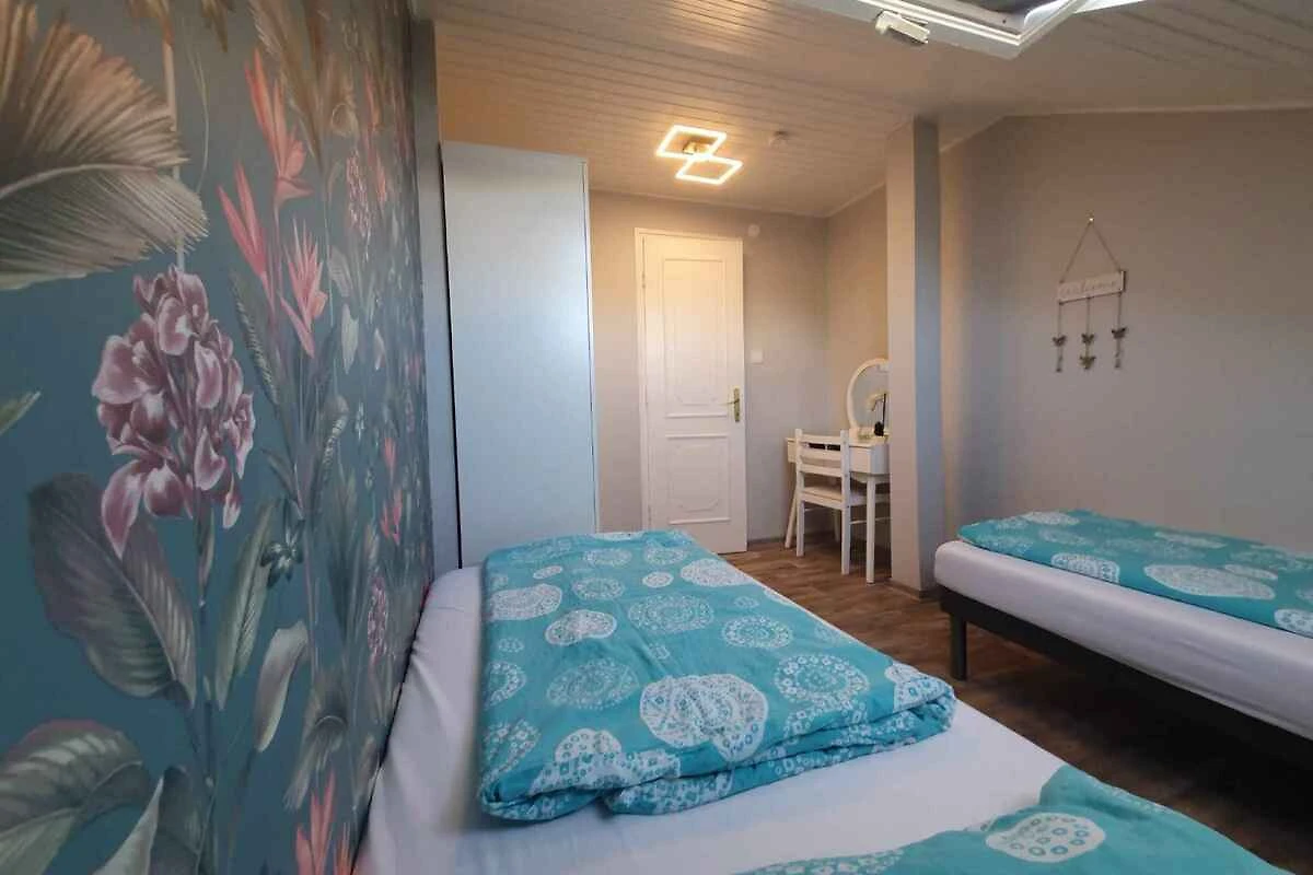 Siófok. Die Ferienwohnung befindet sich auf einem geschlossenen Gartengrundstück mit Wiese, von einem Zaun begrenzt. Der Vermieter wohnt nicht im Haus oder auf dem Grundstück. Die Zufahrt erfolgt über eine Nebenstrasse (asphaltiert). Parkplatz (für 1 Pkw) auf dem Grundstück.