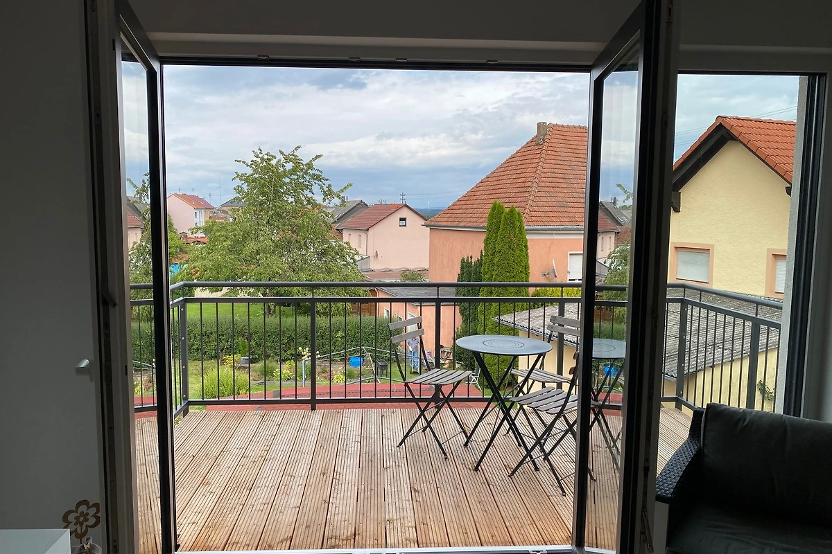 Schöne komplett möbilierte helle Ferienwohnung mit Balkon ( Bj. 2023 ) im Zentrum von Orscholz.