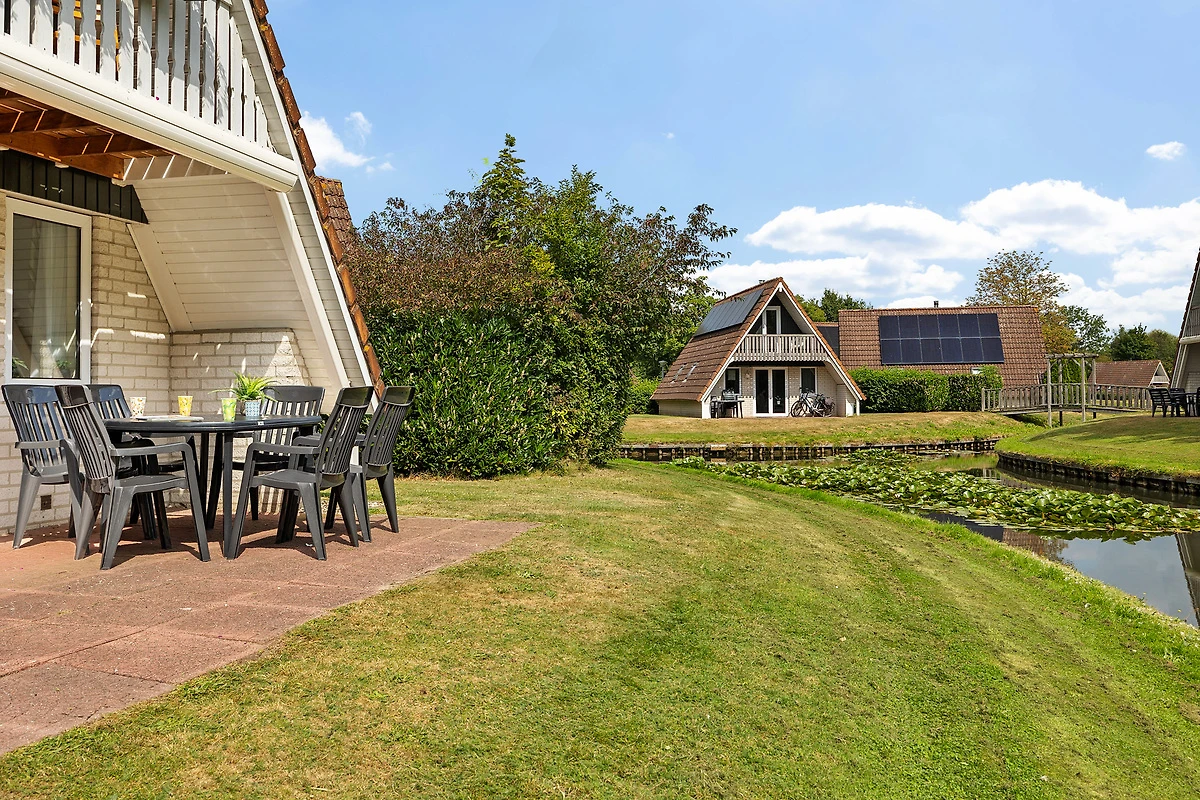 Der Garten dieses Ferienhauses ist mit Terrassenmöbeln ausgestattet. Vom Terrassenaus hast du einen schönen Blick über den Fischteich. Sowohl die Waschmaschine als auch der Wäschetrockner befinden sich in der kompakten Abstellkammer.