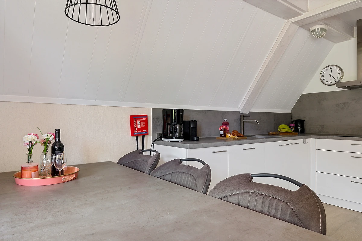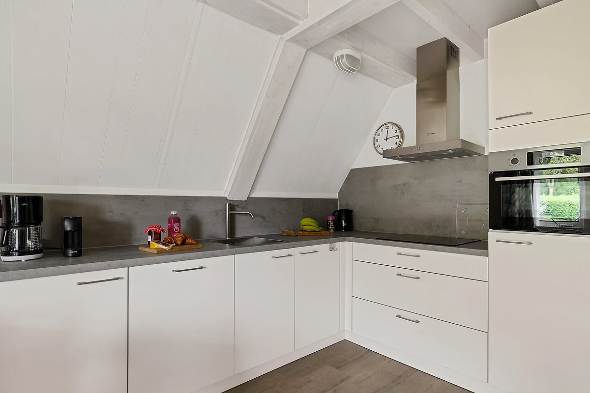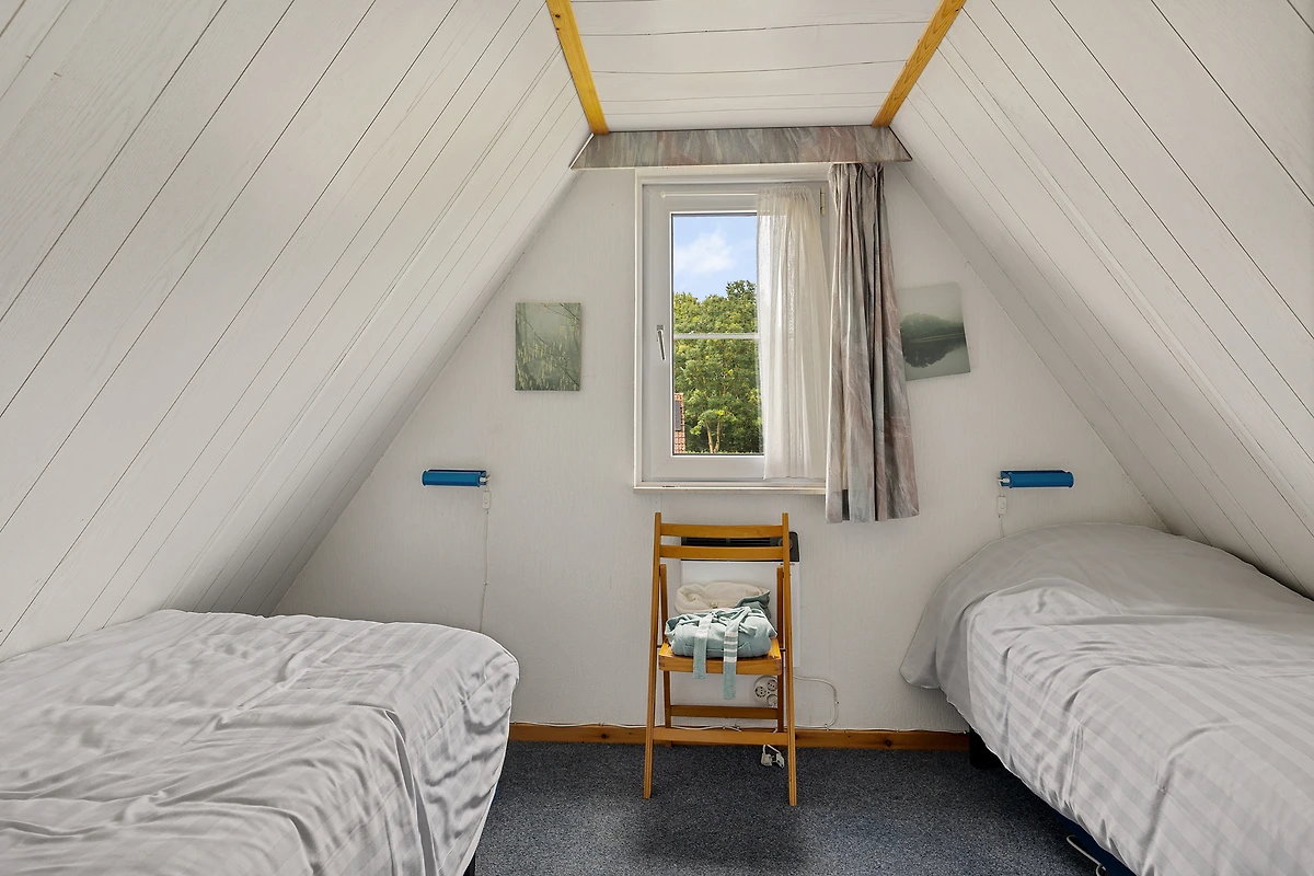 Unser kleines Haus befindet sich an einem wunderschönen Standort am Wasser im Ferienpark 't Hooge Holt. Dieses freistehende Ferienhaus für 6 Personen verfügt im Erdgeschoss über ein Wohnzimmer mit gemütlichem Ess- und Sitzbereich. Der Essbereich ist mit einem großen Esstisch ausgestattet, der ideal ist, um gemütlich Spiele zu spielen. Der Sitzbereich verfügt über einen offenen Kamin. Die offene Küche ist mit einem vollständigen Kücheninventar ausgestattet, einschließlich Geschirrspüler, Kühlschrank, vierflammigem Elektroherd, Filterkaffeemaschine und Kombimikrowelle. Im Erdgeschoss befindet sich auch ein Badezimmer. Das Badezimmer ist mit einer Dusche und einer Waschtischkombination ausgestattet. Das separate WC befindet sich im Flur. Ebenfalls findest du im Erdgeschoss eines der drei Schlafzimmer mit zwei Einzelbetten. Die erste Etage enthält einen Balkon, einen Flur mit Kleiderschränken und zwei Schlafzimmer. Beide Schlafzimmer sind mit zwei Einzelbetten ausgestattet.