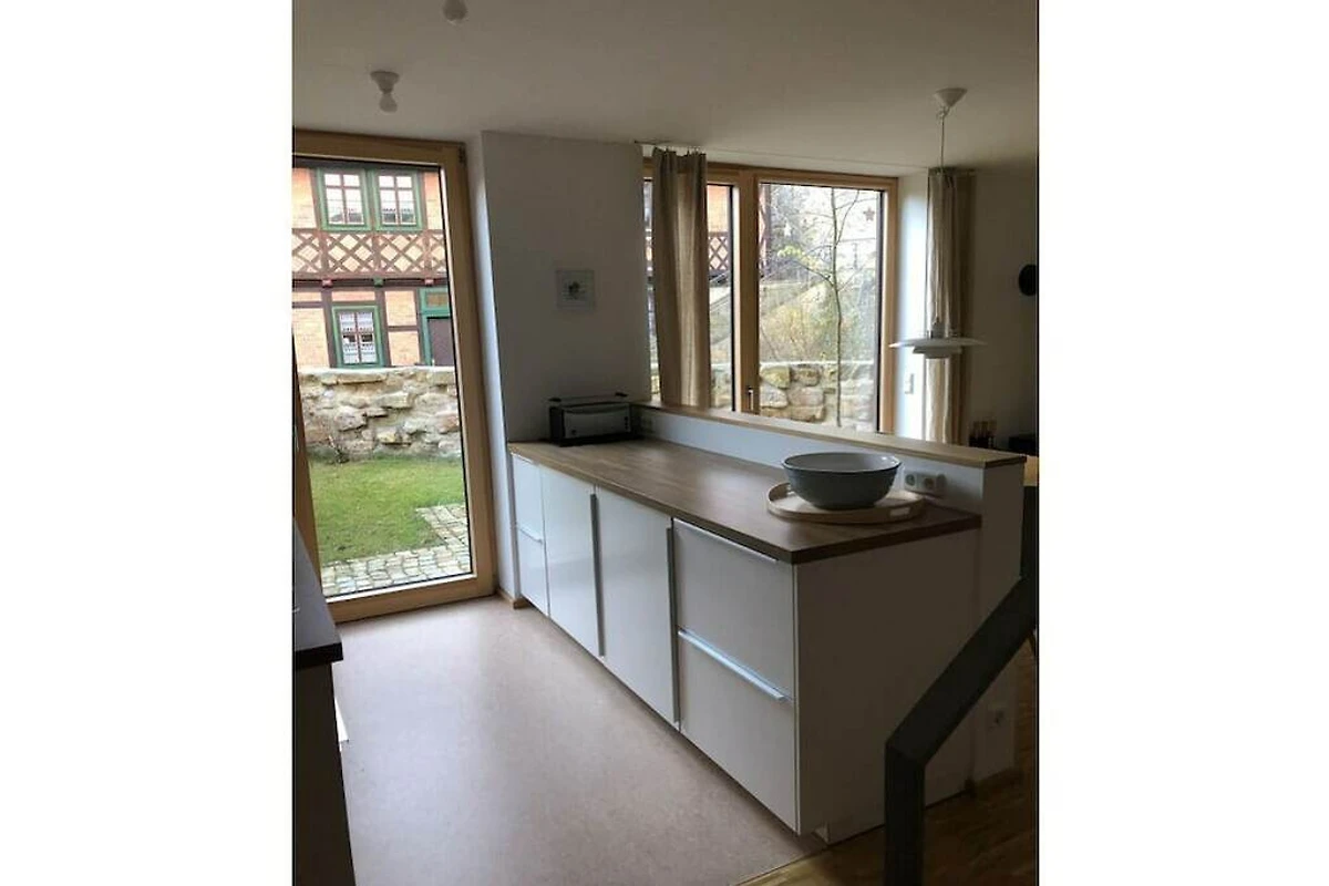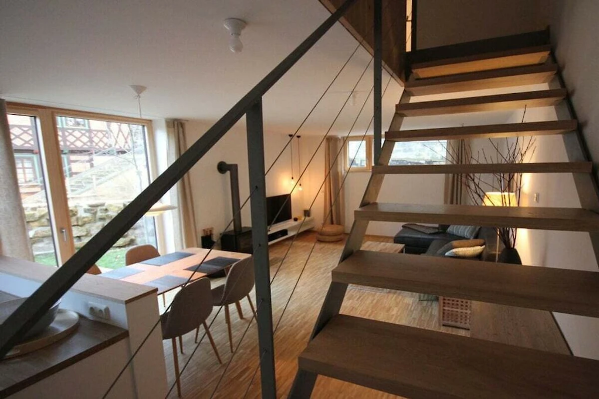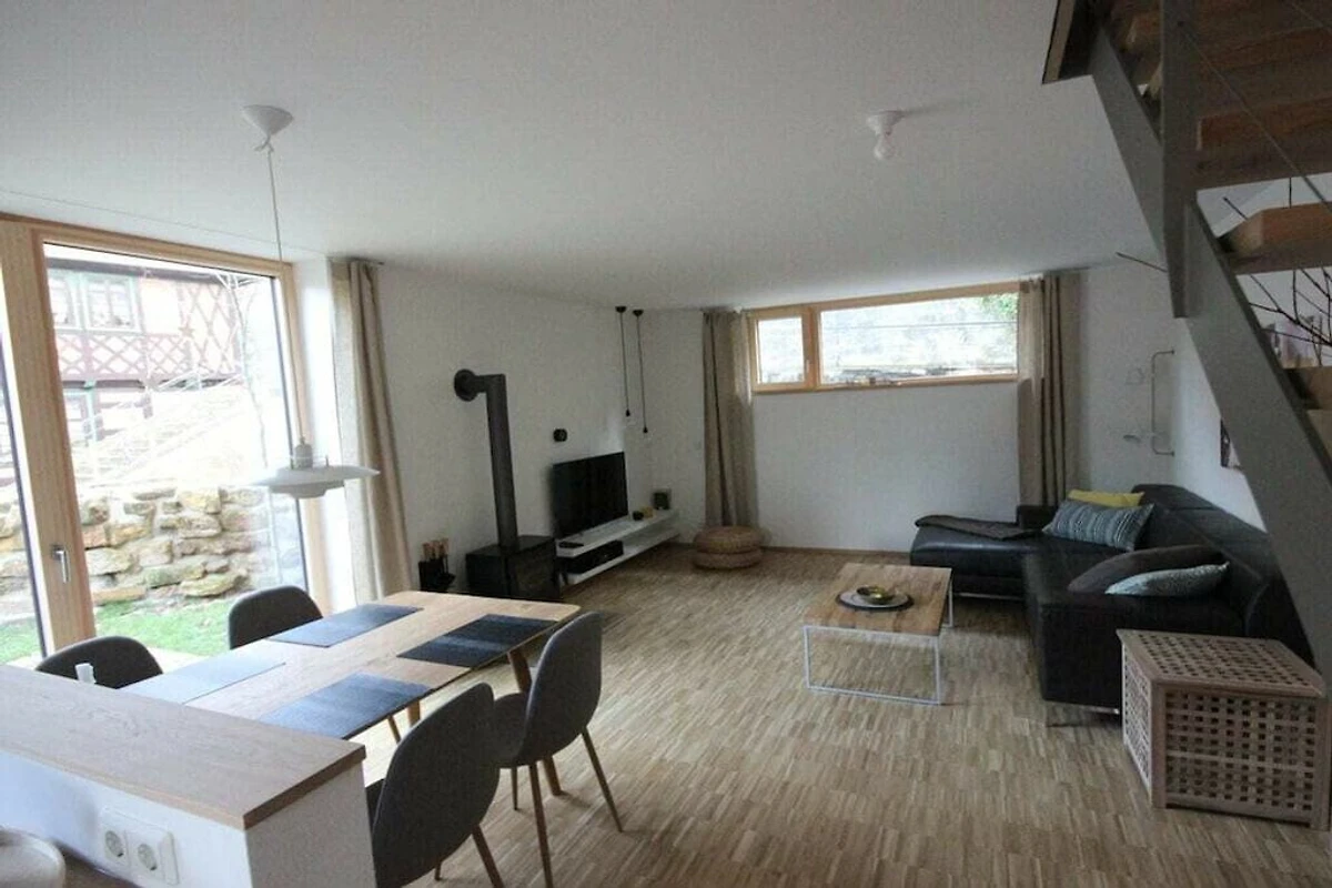 Das Ferienhaus ist mit viel Liebe eingerichtet und bietet allen Komfort den man sich wünscht. Das Wohnzimmer ist mit einem Kaminofen ausgestattet (Holz incl.). Zum Haus gehört ein eigener Garten mit Sandsteineinfriedung sowie ein Stellplatz direkt vorm Haus.
