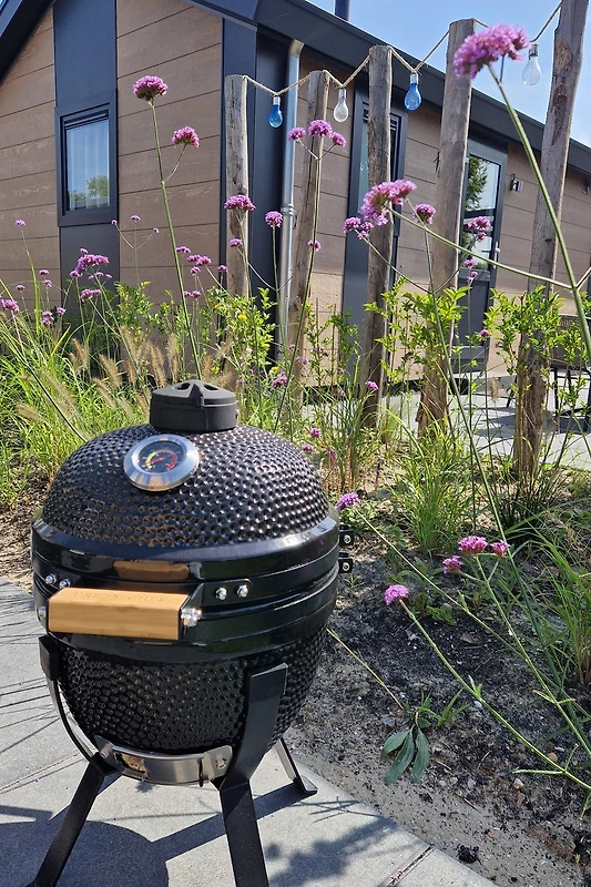 Der sonnige Garten und die überdachte Terrasse laden zum Entspannen ein. Hier können Sie gemütlich essen, die Sonne genießen oder den Kamado-Grill nutzen.