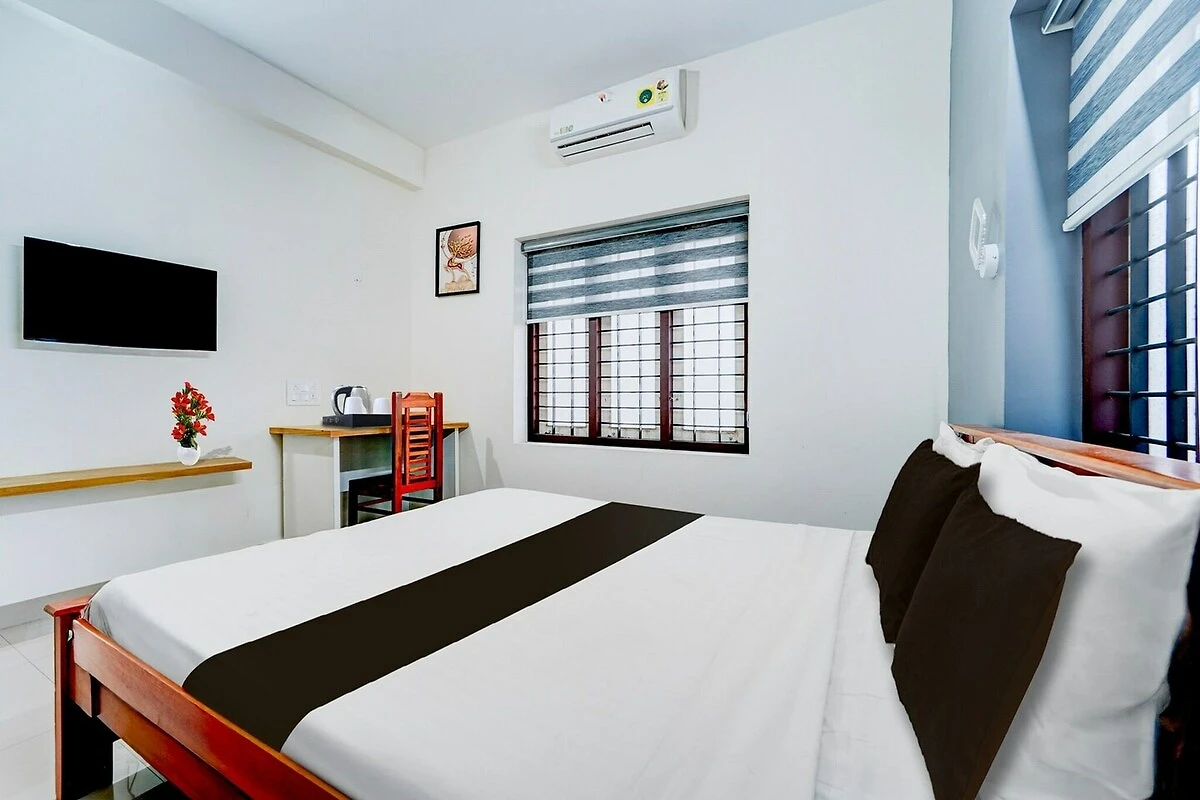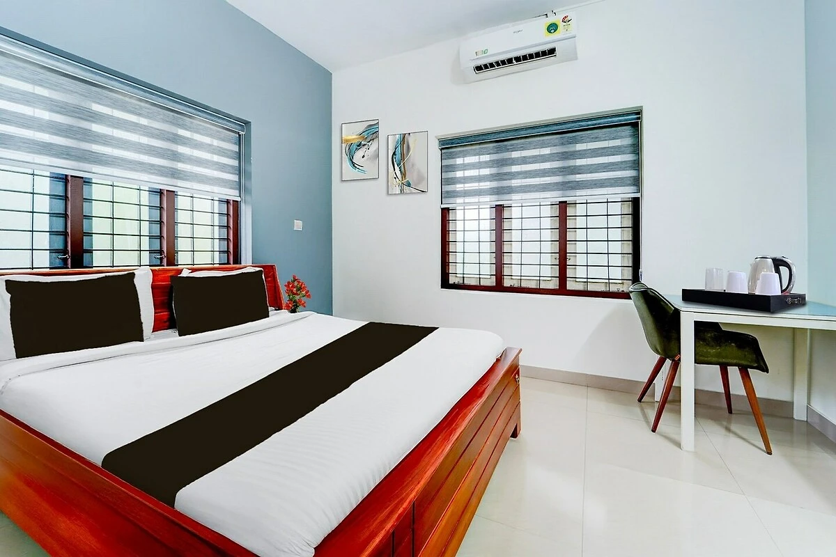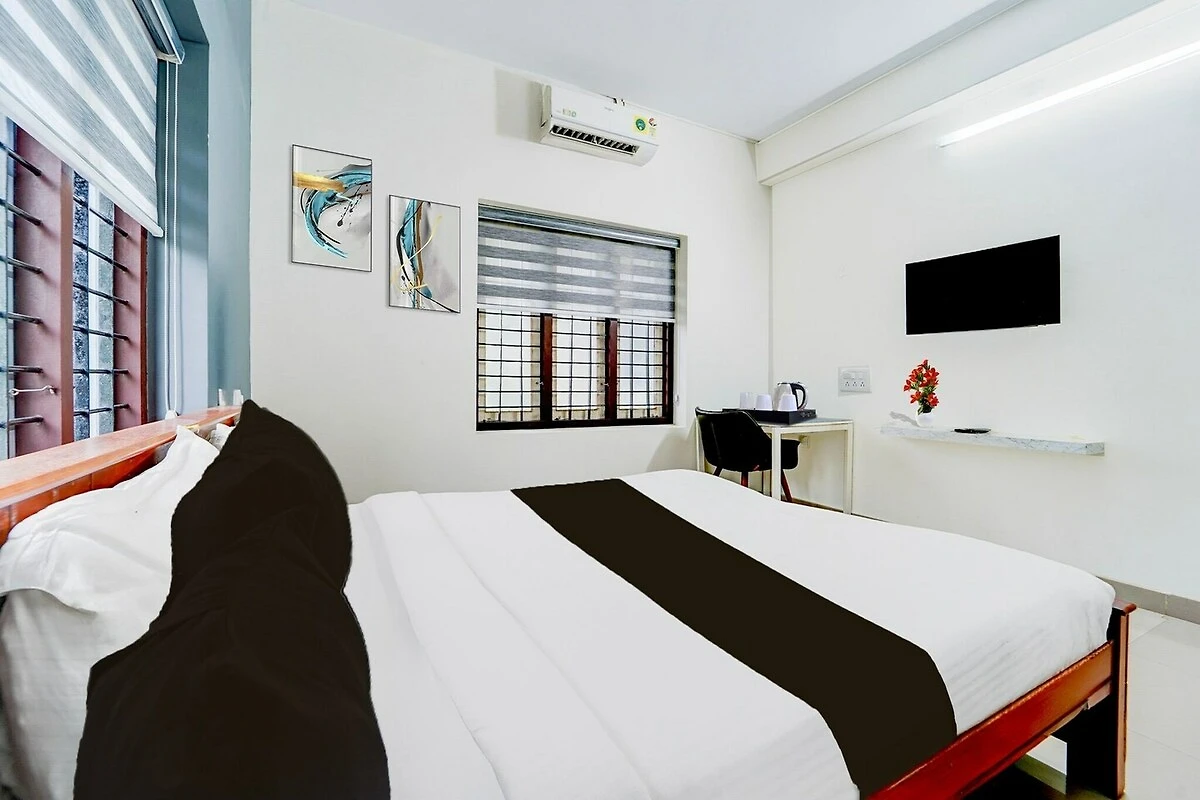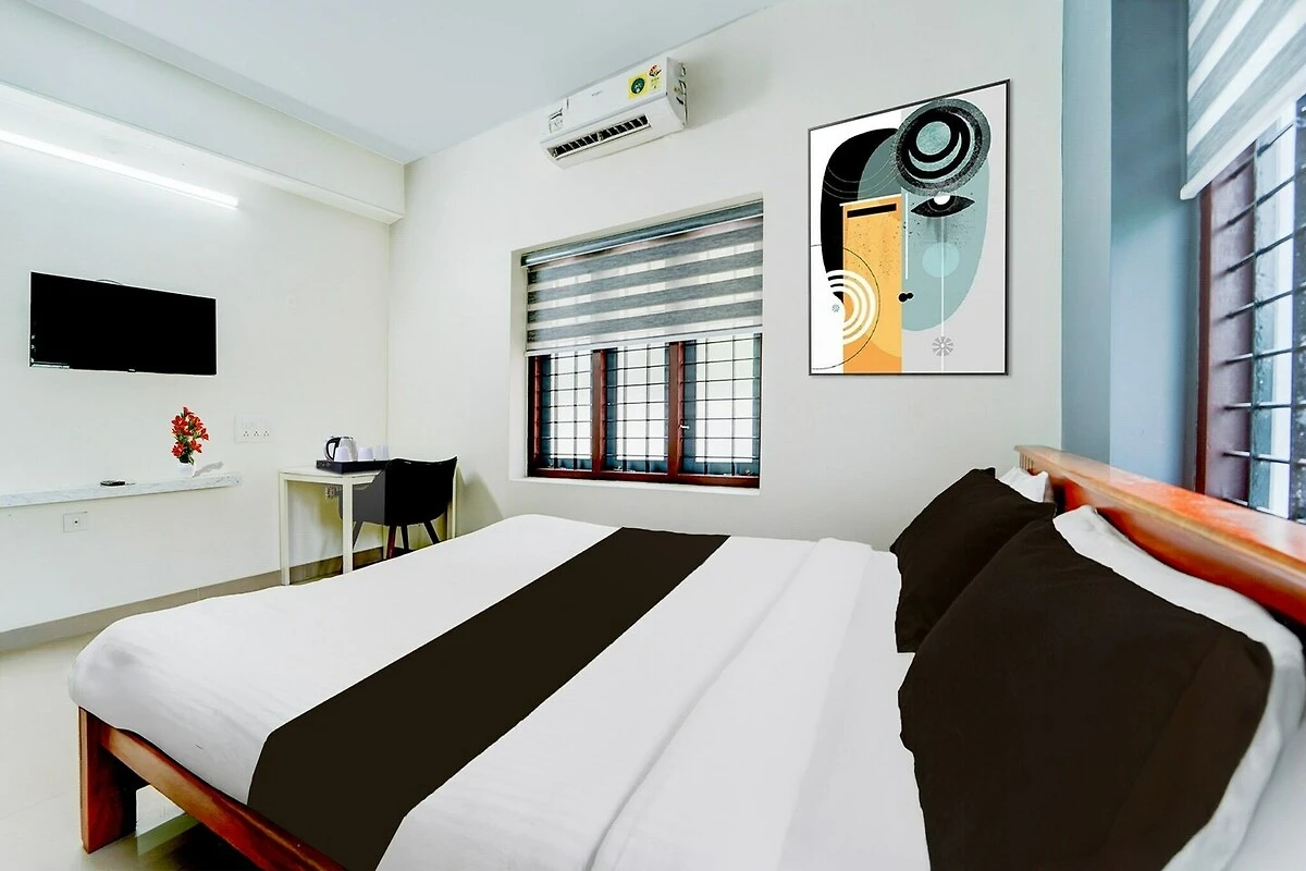 Komfortable Unterkünfte: Das Hotel O Kazhakootam in Trivandrum bietet Familienzimmer mit Klimaanlage, eigenem Bad, Schreibtisch und Sitzecke. Jedes Zimmer verfügt über kostenlose Toilettenartikel, Badewanne oder Dusche, TV, Fliesenboden und Kleiderschrank.