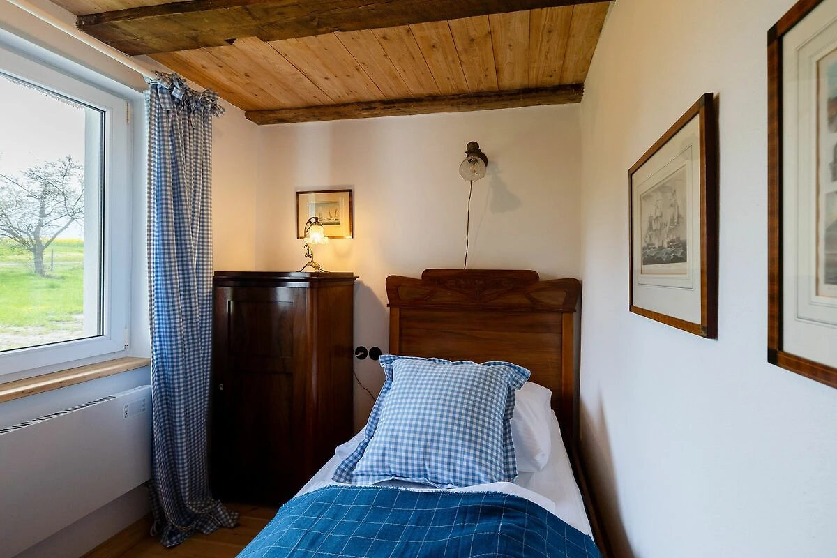 Die Lage,viel Ruhe, Natur wir hatten Rehe u.Hasen im Garten.Auch das Reetgedeckte Haus mit seiner tollen nostalgischen Ausstattung war toll.