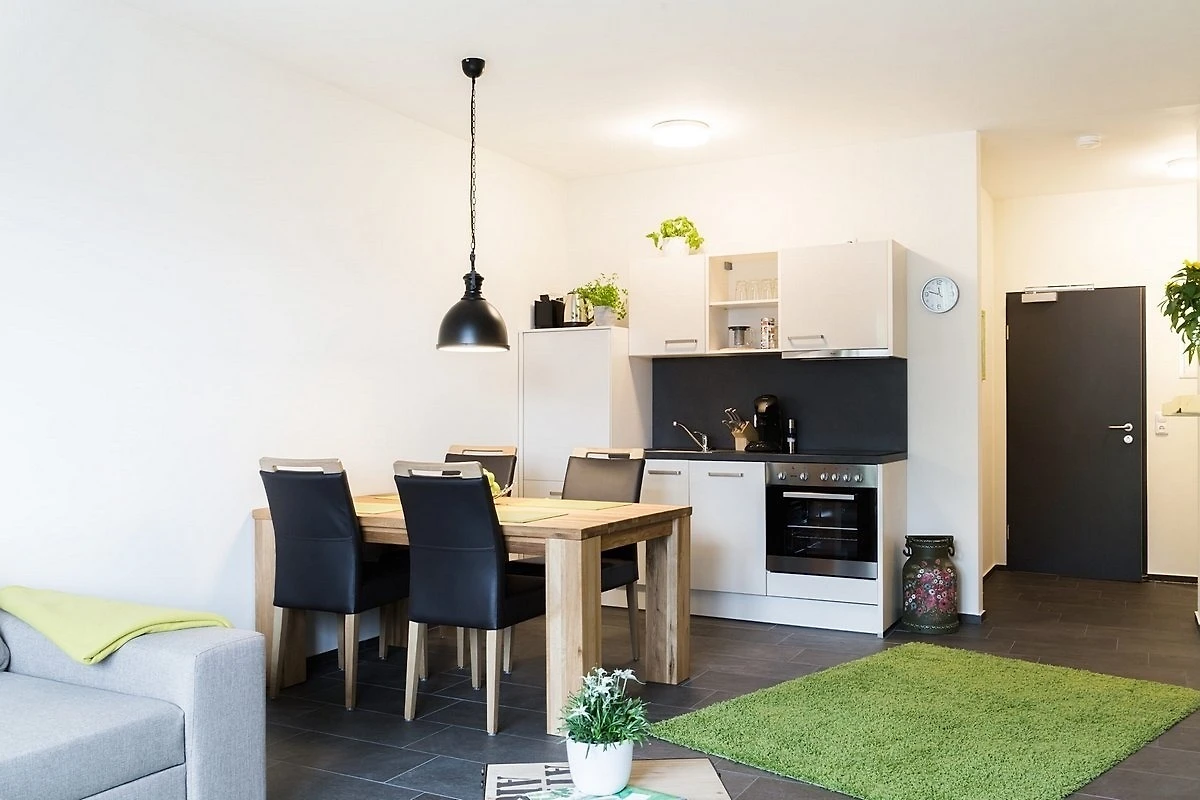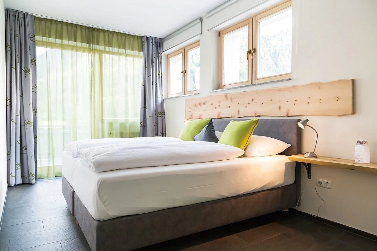 Moderne Wohnkultur mit traditionellem Alpencharme machen diese Ferienwohnung für alle Personen und Ihr Haustier zur perfekten Heimat auf Zeit. Für Sie und Ihre Lieben legen wir höchsten Wert auf eine komfortable Ausstattung. Die wildgrünen Zirbenholzelemente, das hochwertige Boxspringbett, die moderne Küche und natürliche, alpenländische Dekoration sorgen für die einzigartige Wohlfühlatmosphäre die unsere Gäste so schätzen.