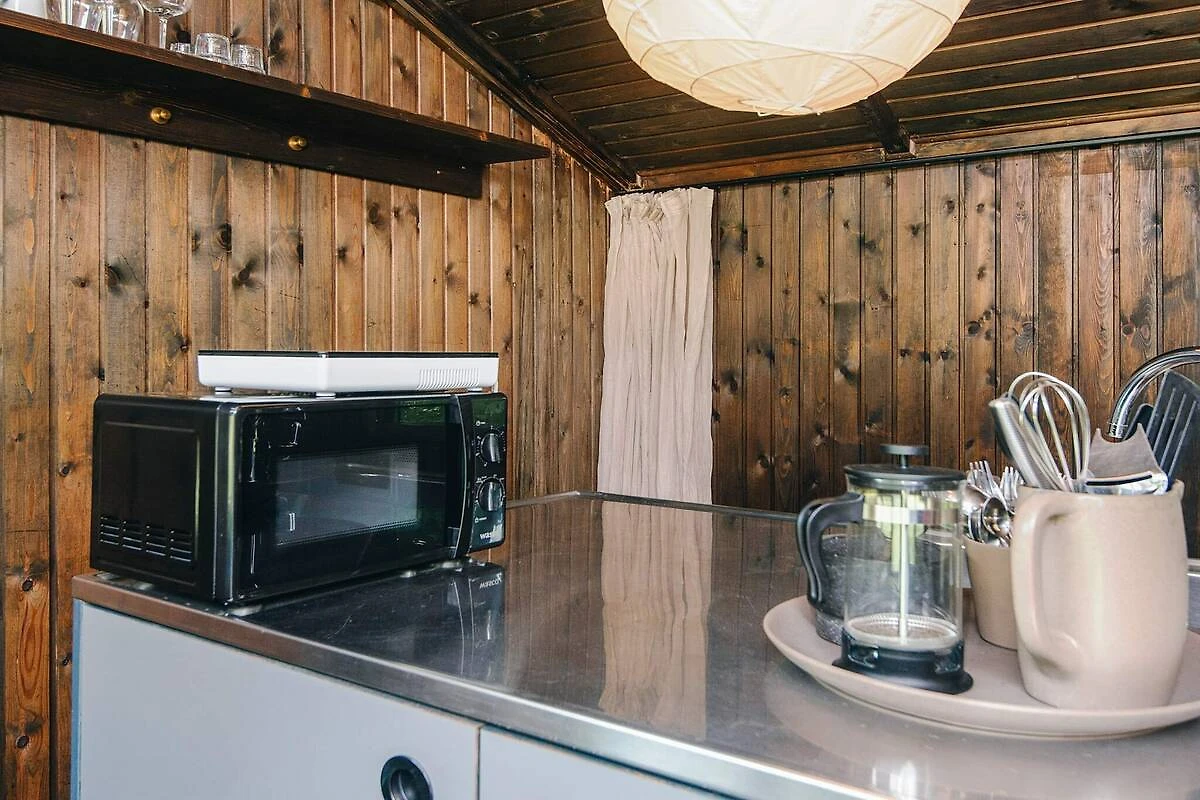 Wohnzimmer(Doppelbett, TV(dänische Fernsehsender), Chromecast), Küche(Kochherd(2 Kochplatten), Kaffeemaschine, Mikrowelle, Kühlschrank(+ Gefrierfach)), Schlafzimmer(2x Etagenbett), Badezimmer(Waschbecken, Dusche, Toilette), Heizung(elektrisch), Terrasse, Gartenmöbel