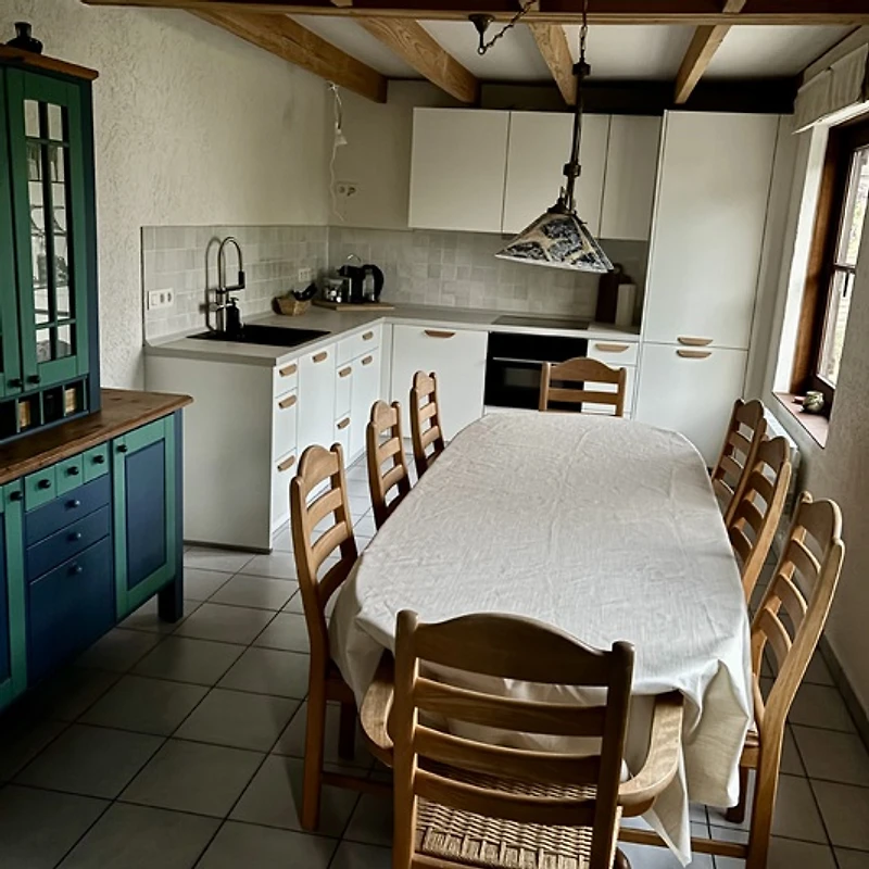 Das Haus verfügt über eine voll ausgestattete Küche mit Geschirrspüler, Mikrowelle, Wasserkocher und Kaffeemaschine, ideal um leckere Mahlzeiten zu zaubern. Der große Esstisch in der Küche lädt zu gemeinsamen Mahlzeiten ein und das warme Holzinterieur sorgt für eine heimelige Atmosphäre.