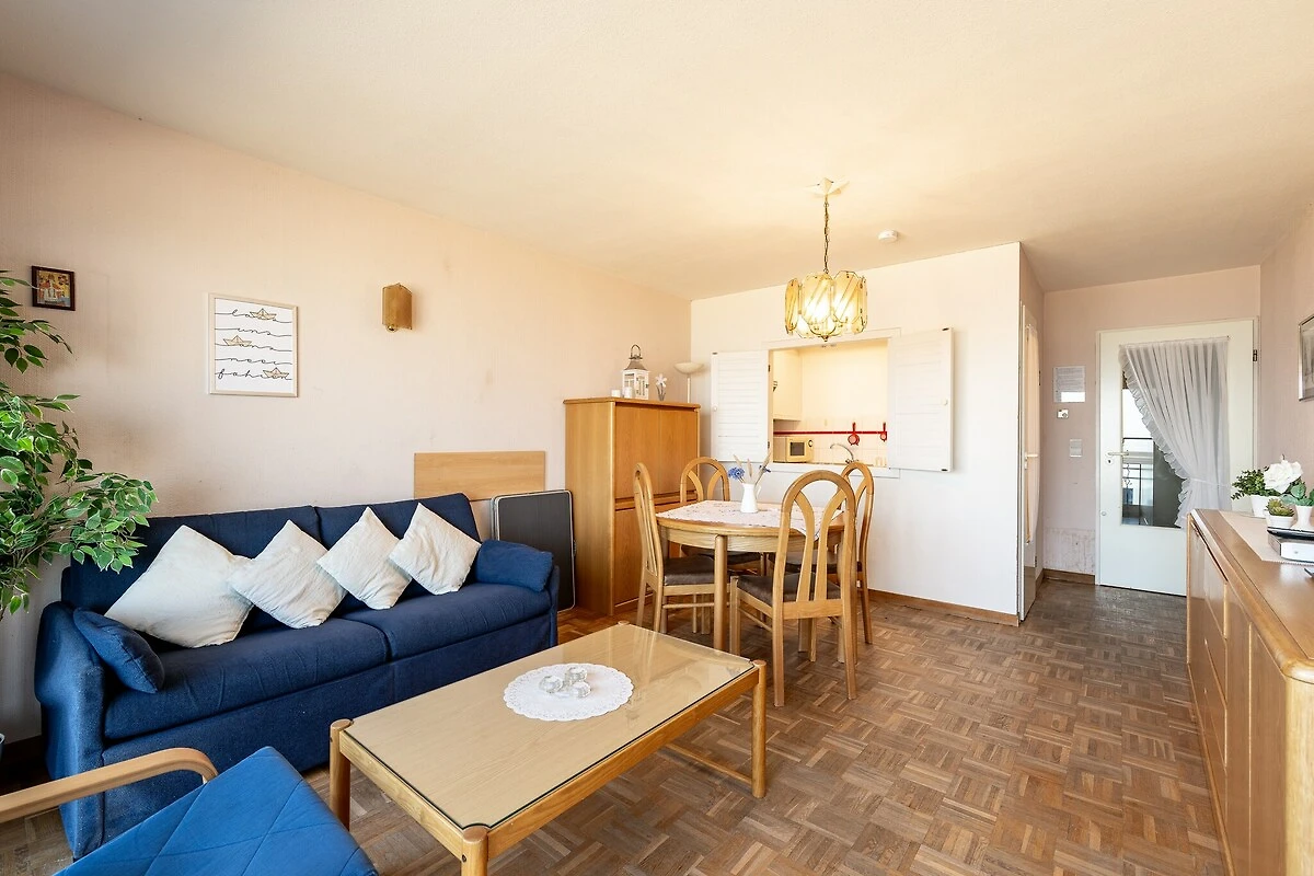 Dieses einladende Apartment im sechsten Stock an der Küste bietet eine ruhige Lage oberhalb der lebhaften Promenade von Blankenberge mit weitem Meerblick und viel Sonnenlicht, das durch die Terrassen an Vorder- und Rückseite strömt. Das Apartment ist ideal für Paare oder kleine Familien und verfügt über ein Doppelzimmer mit weichem Teppichboden und ein gemütliches Wohnzimmer mit Schlafsofa – ideal für bis zu vier Gäste. Ob Sie morgens Ihren Kaffee trinken und dabei den Wellen zusehen oder nach einem Spaziergang am Meer entspannen – die Einrichtung ist einfach, praktisch und komfortabel.