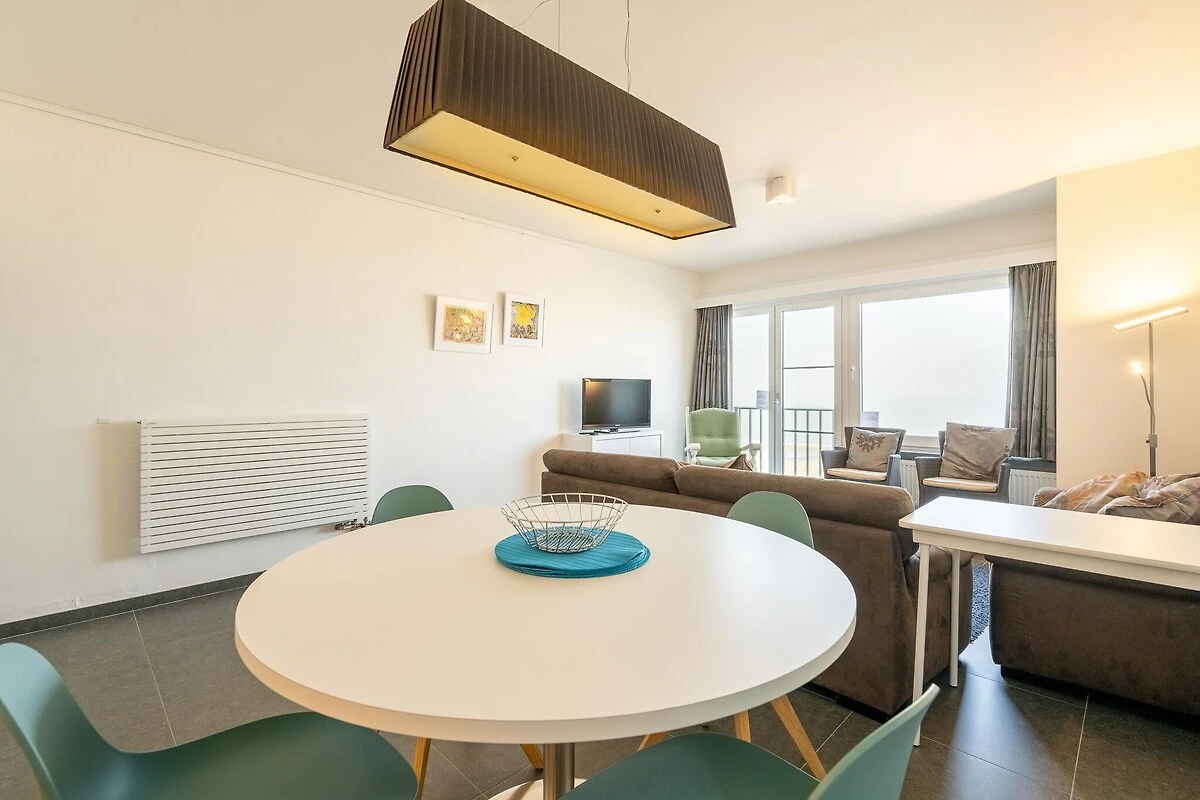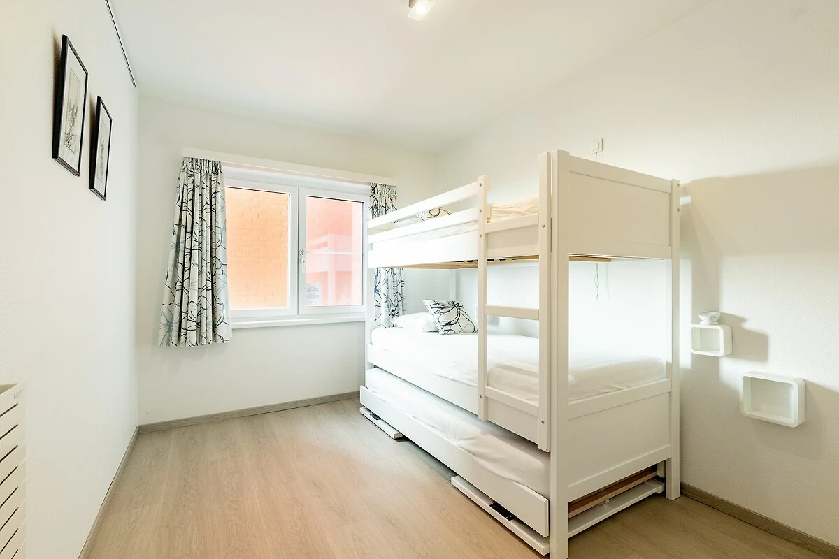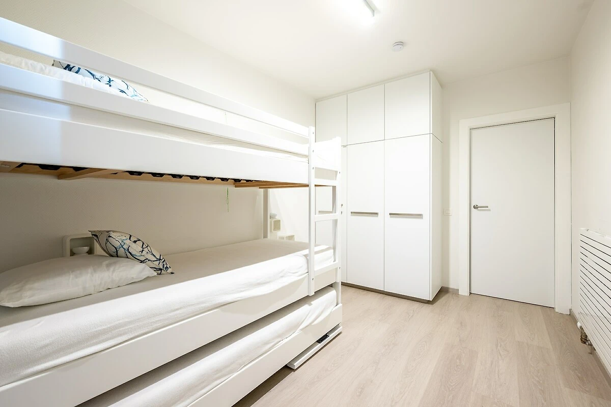 Mit atemberaubendem Meerblick vom 8. Stock und dem berühmten Pier nur wenige Schritte entfernt bietet dieses lichtdurchflutete Apartment an der Küste den perfekten familienfreundlichen Ausgangspunkt im Herzen von Blankenberge. In einer ruhigen Seitenstraße direkt an der Strandpromenade gelegen, bietet es bequem Platz für bis zu vier Gäste in zwei gut ausgestatteten Schlafzimmern – eines mit einem geräumigen 1,80 m breiten Doppelbett und Babybett, das andere mit einem eleganten Etagenbett mit einem Doppelbett unten und einem Einzelbett oben.