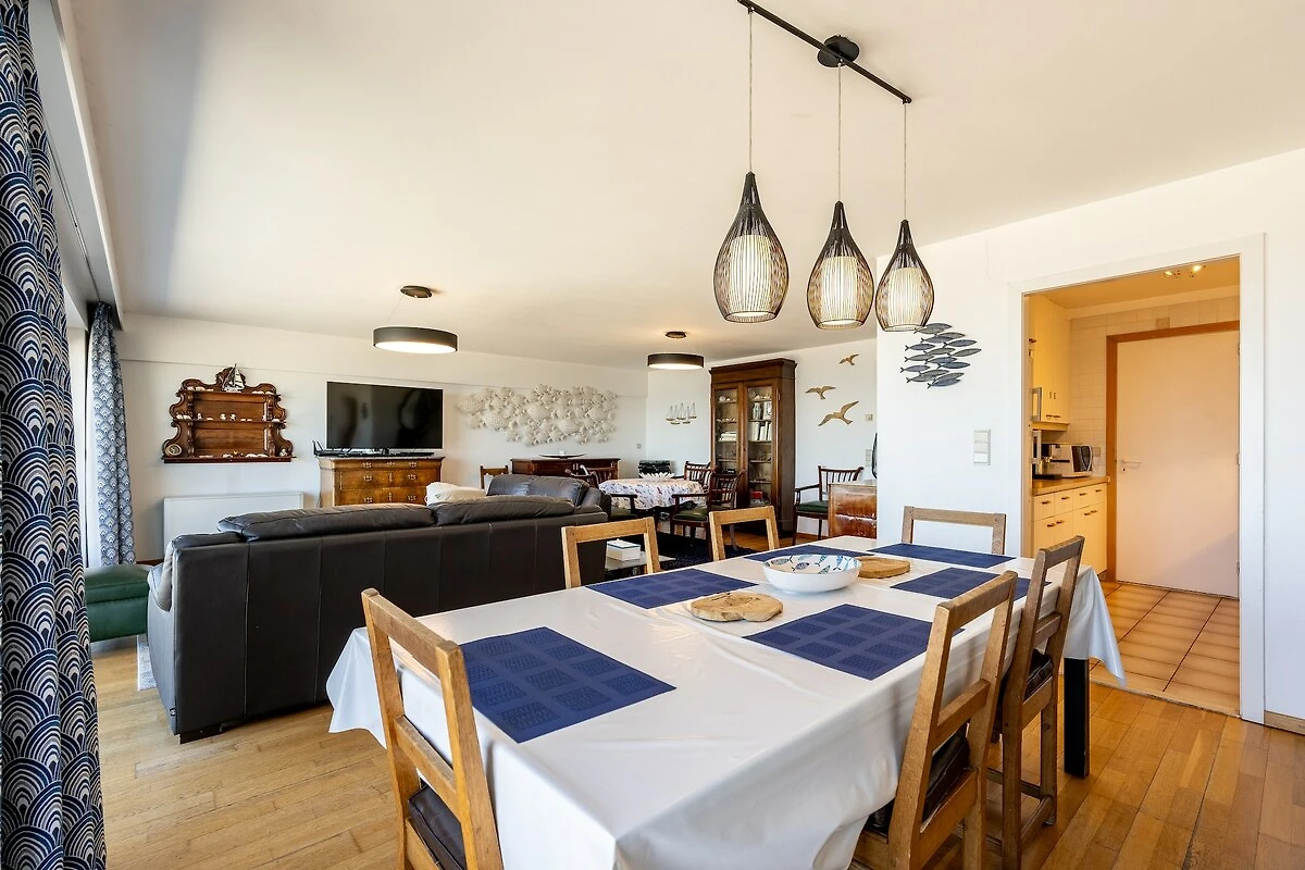 Dieses helle und geräumige 3-Zimmer-Apartment ist der perfekte Rückzugsort an der Küste für bis zu 6 Gäste. Dank der idealen Lage am Zeedijk genießen Sie von der großen Terrasse einen atemberaubenden Meerblick und sind gleichzeitig nur wenige Schritte vom Strand, den lebhaften Einkaufsstraßen von Blankenberge, dem Pier und dem Casino entfernt. Das lichtdurchflutete Apartment bietet eine warme und einladende Atmosphäre mit modernem Komfort. Die großzügige Raumaufteilung umfasst drei komfortable Schlafzimmer: zwei mit Doppelbetten und eines mit zwei Einzelbetten – ideal für Familien oder kleine Gruppen.