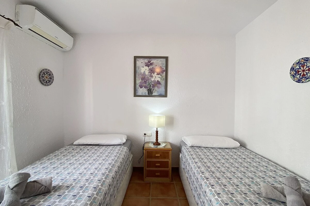 Dieses einladende Stadthaus im traditionellen Stil mit zwei Schlafzimmern befindet sich in der malerischen Urbanisation Pueblo Andaluz und bietet Platz für bis zu vier Gäste. Es verfügt über ein Schlafzimmer mit Doppelbett, ein weiteres mit zwei Einzelbetten und ein Schlafsofa im geräumigen Wohnzimmer im Erdgeschoss. Das Haus bietet zwei Badezimmer mit Duschen, eine private Dachterrasse mit Liegestühlen und Grill sowie einen Balkon im Obergeschoss. Alle Zimmer sind klimatisiert und beheizt. Kostenloses Highspeed-Internet und internationale TV-Kanäle stehen den Gästen zur Verfügung. Haustiere sind nicht erlaubt, optionale Extras wie ein Kinderbett, ein Hochstuhl oder ein Willkommenspaket sorgen jedoch für zusätzlichen Komfort.
