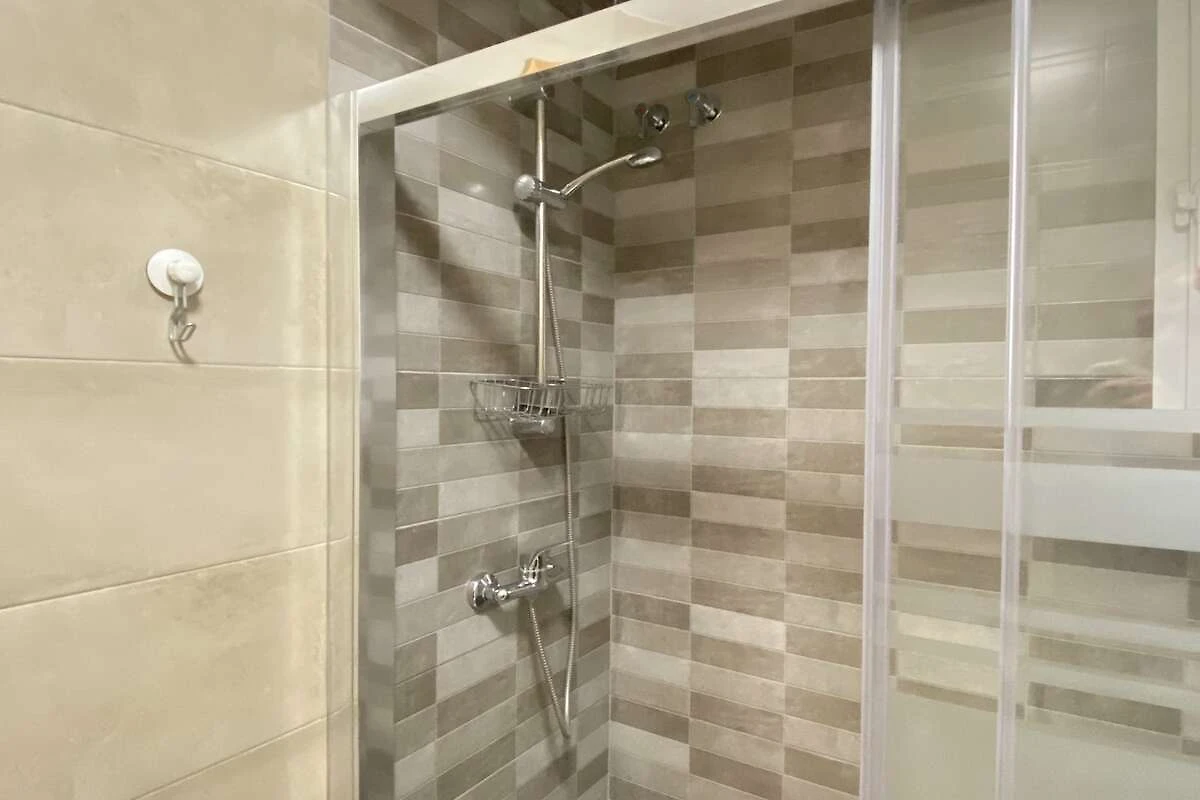Das Apartment verfügt über eine offene Küche mit Cerankochfeld, Kühlschrank, Backofen, Mikrowelle, Gefrierschrank, Geschirrspüler sowie Kaffeemaschine, Toaster und Wasserkocher. Waschmaschine, Bügeleisen und Haartrockner sorgen für zusätzlichen Komfort. Das Badezimmer ist mit einer modernen Dusche ausgestattet. Die gesamte Unterkunft ist klimatisiert und somit ein idealer Ausgangspunkt für Paare, die die Region erkunden möchten.