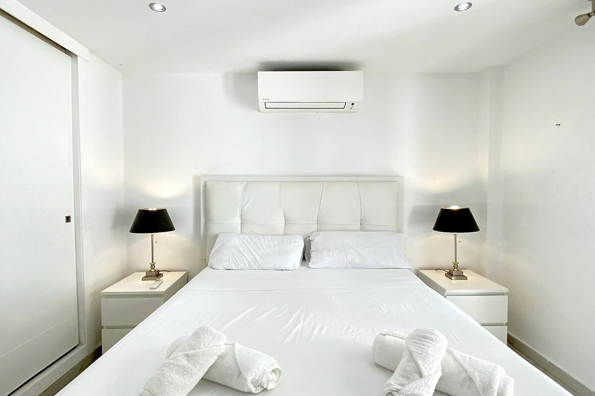 Dieses gemütliche Apartment mit 2 Schlafzimmern im Bahamas-Gebäude bietet bis zu vier Gästen einen komfortablen Aufenthalt. Die Terrasse bietet Blick auf den Gemeinschaftspool und die Grünfläche – ideal zum Entspannen und Genießen der Natur. Das Apartment ist mit modernen Annehmlichkeiten wie Klimaanlage, Highspeed-Internet, Bügeleisen und Haartrockner ausgestattet. Bettwäsche und Handtücher werden gestellt, um einen sorgenfreien Aufenthalt zu gewährleisten. Gemeinschaftsparkplätze sind zwar vorhanden, jedoch begrenzt, sodass ein Parkplatz nicht garantiert werden kann.
