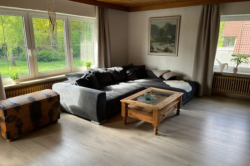 Die vollständig renovierte und komplett eingerichtete 100 qm grosse Ferienwohnung befindet sich im 1.Obergeschoss eines Zweifamilienhauses.