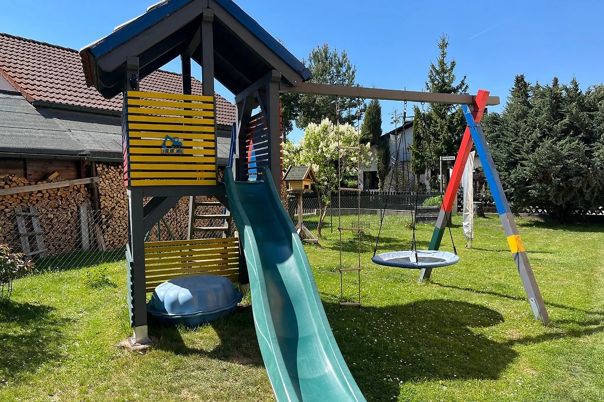 Für Familien mit Kindern bietet unser eingezäuntes Grundstück jede Menge Freiraum. Ein Spielturm mit Schaukeln, Rutsche und Sandkasten steht ebenfalls zur Verfügung.
