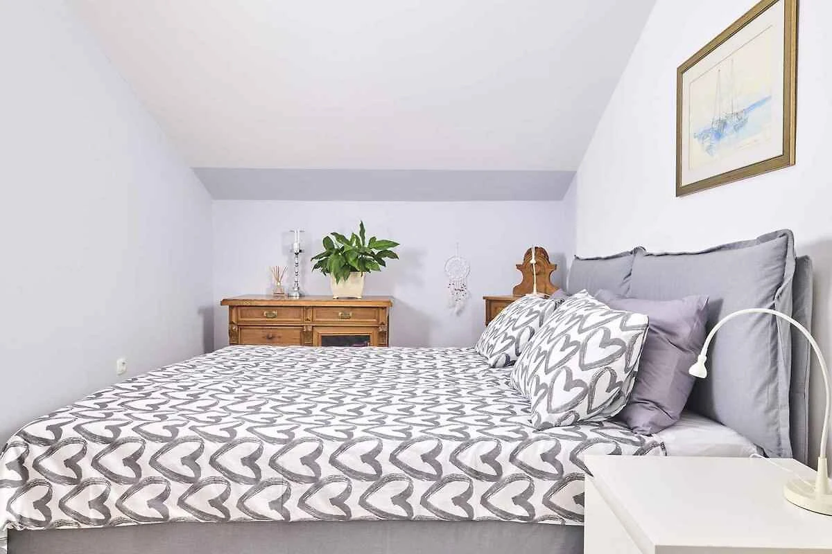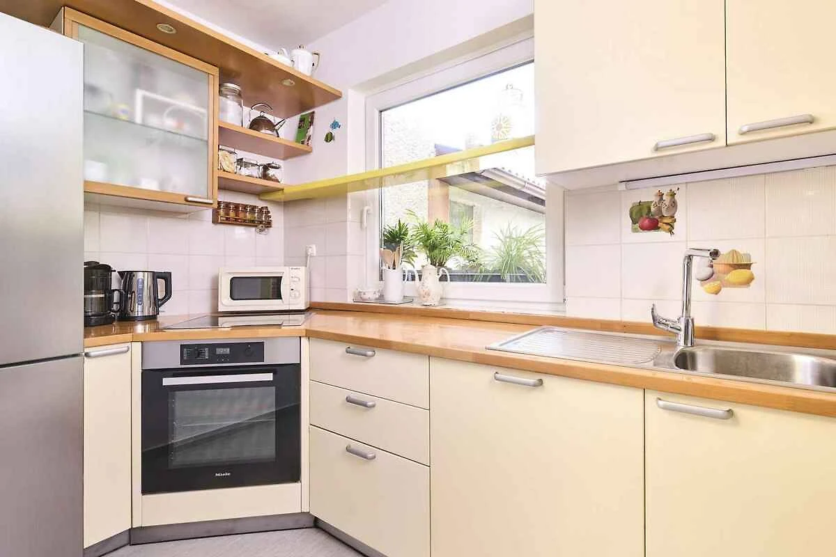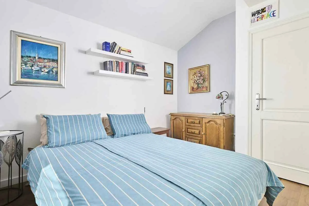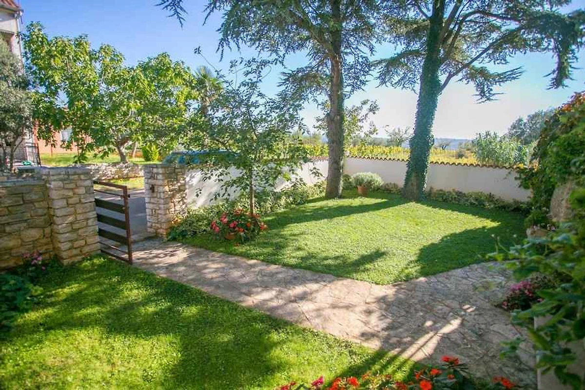 Novigrad. Die Ferienwohnung befindet sich auf einem Gartengrundstück. Parkplatz (für 1 Pkw) auf dem Grundstück.