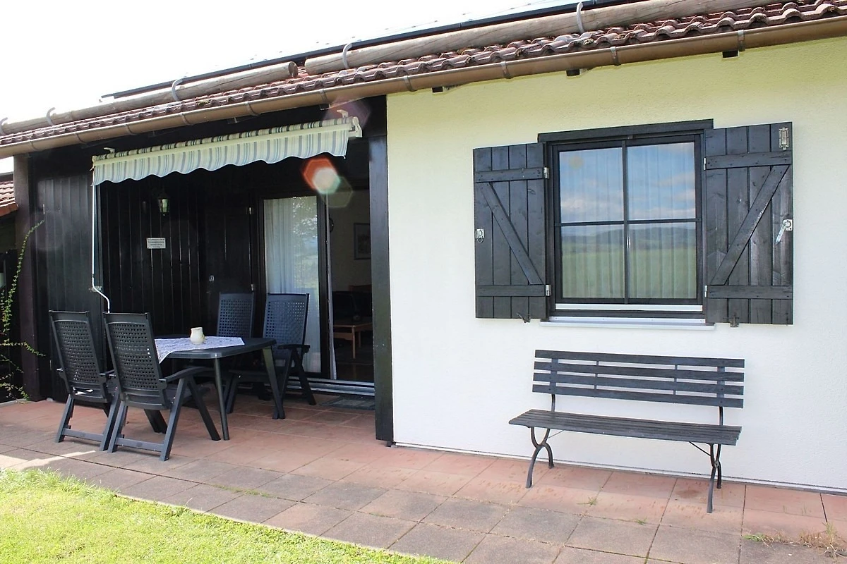 Das Ferienhaus ist ein Reiheneckhaus mit ca. 64 m² und zeichnet sich durch die besonders schöne Lage ganz am Aussenrand des Feriendorfes im Hochbergle, mit Blick auf die Berge und den Lechsee aus. Die neue Terrasse ist voll möbliert mit Tisch, Stühlen und zwei Sonnenliegen.