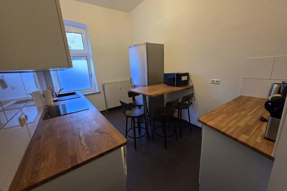 In der Küche befindet sich, ein Ceranherd, Backofen, Geschirrspüler, Waschmaschine, Kühlschrank, Kaffeemaschine, Wasserkocher und ausreichend Geschirr.