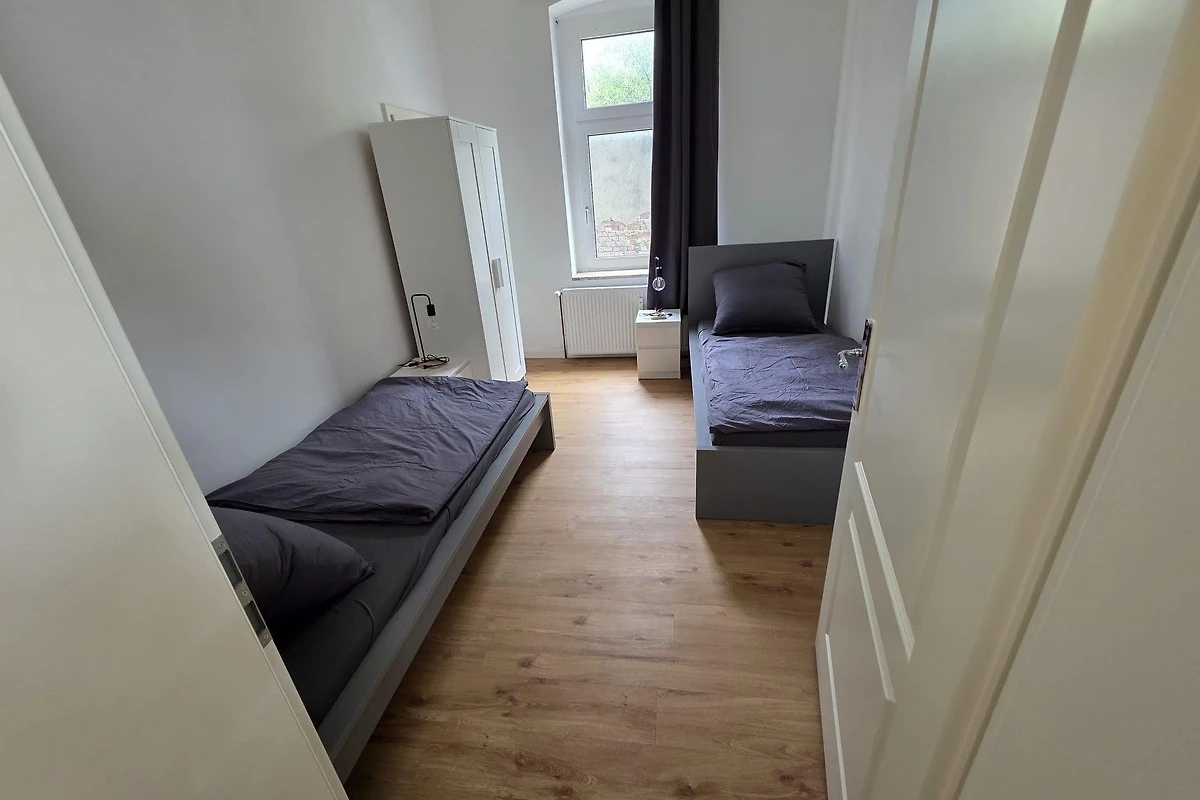Die Wohnung hat 3 Zimmer und ist mit 5 komfortablen Einzelbetten, Kleiderschränken, Stühlen und Tisch, W-Lan sowie TV eingerichtet.