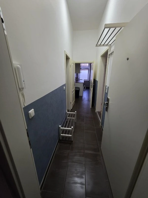 Das Badezimmer ist mit einer Dusche, WC sowie einem Wäscheständer ausgestattet.