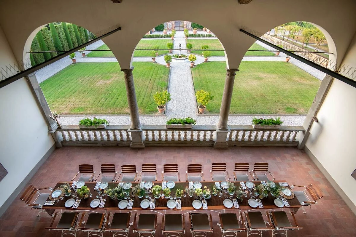 Am Fuße der malerischen Hügel von Lucca gelegen, lädt diese außergewöhnliche Villa zu einem wahrhaft einzigartigen Urlaub ein. Vollklimatisiert und für modernen Komfort ausgestattet, ist sie umgeben von üppigen Weinbergen und sorgfältig gepflegten Gärten und bietet einen idyllischen Rückzugsort vom Trubel der Außenwelt. Die weitläufige Terrasse aus dem 17. Jahrhundert bietet einen bezaubernden Panoramablick auf sanfte Hügel, wo atemberaubende Sonnenuntergänge die fernen Weinberge in Rosa- und Orangetöne tauchen.