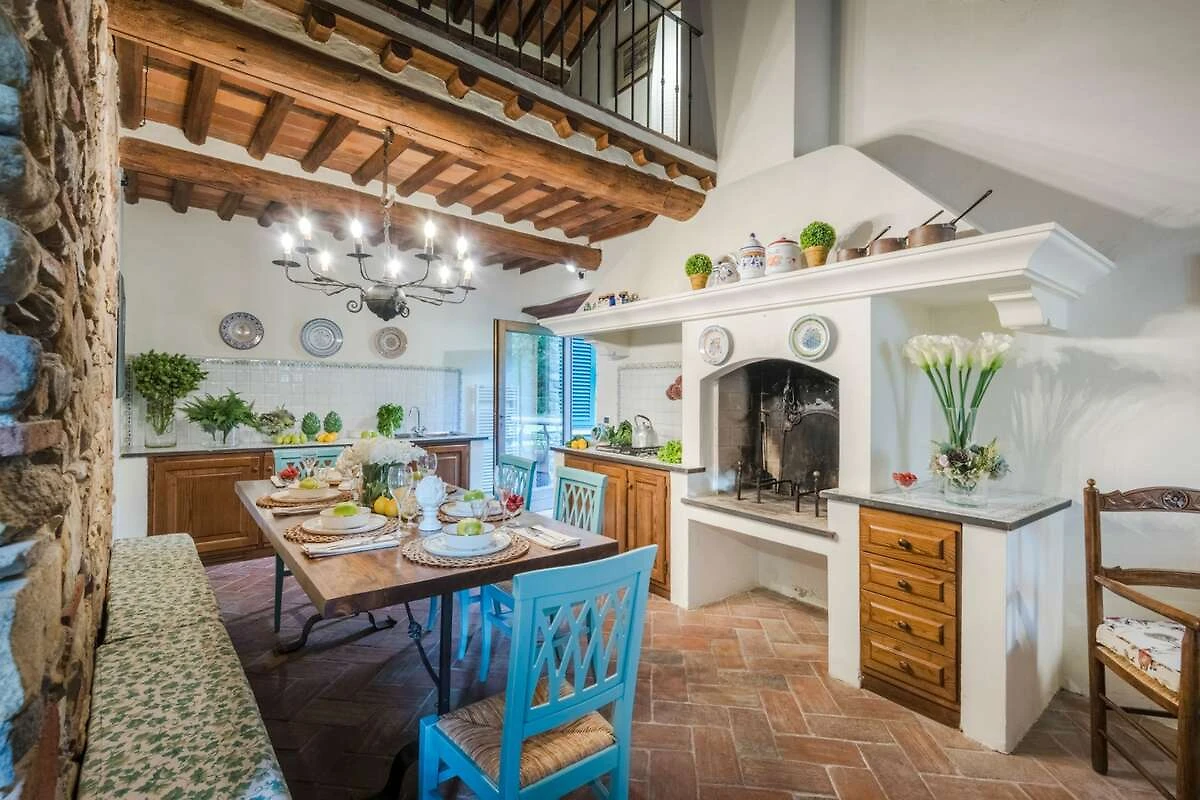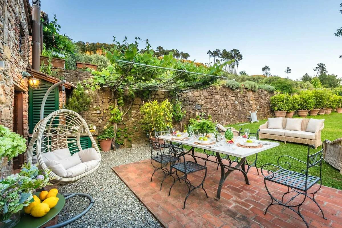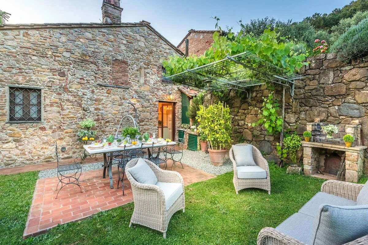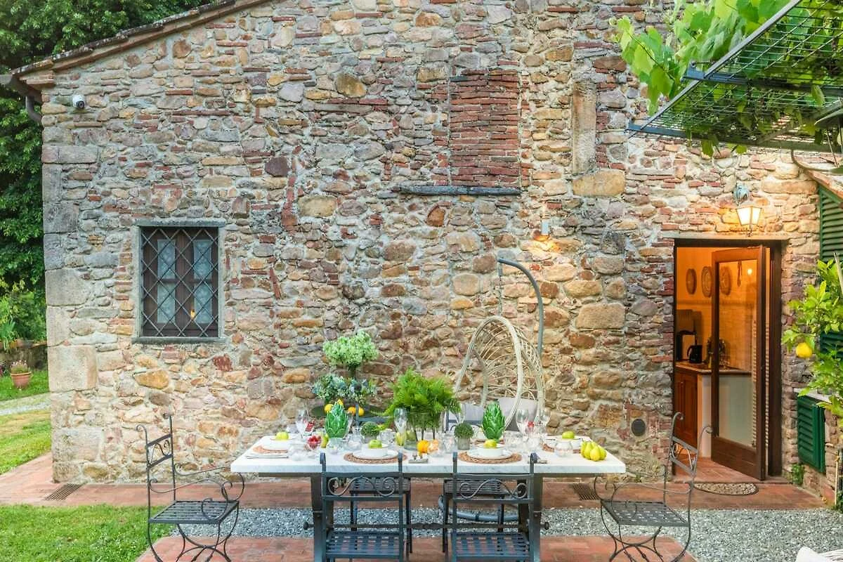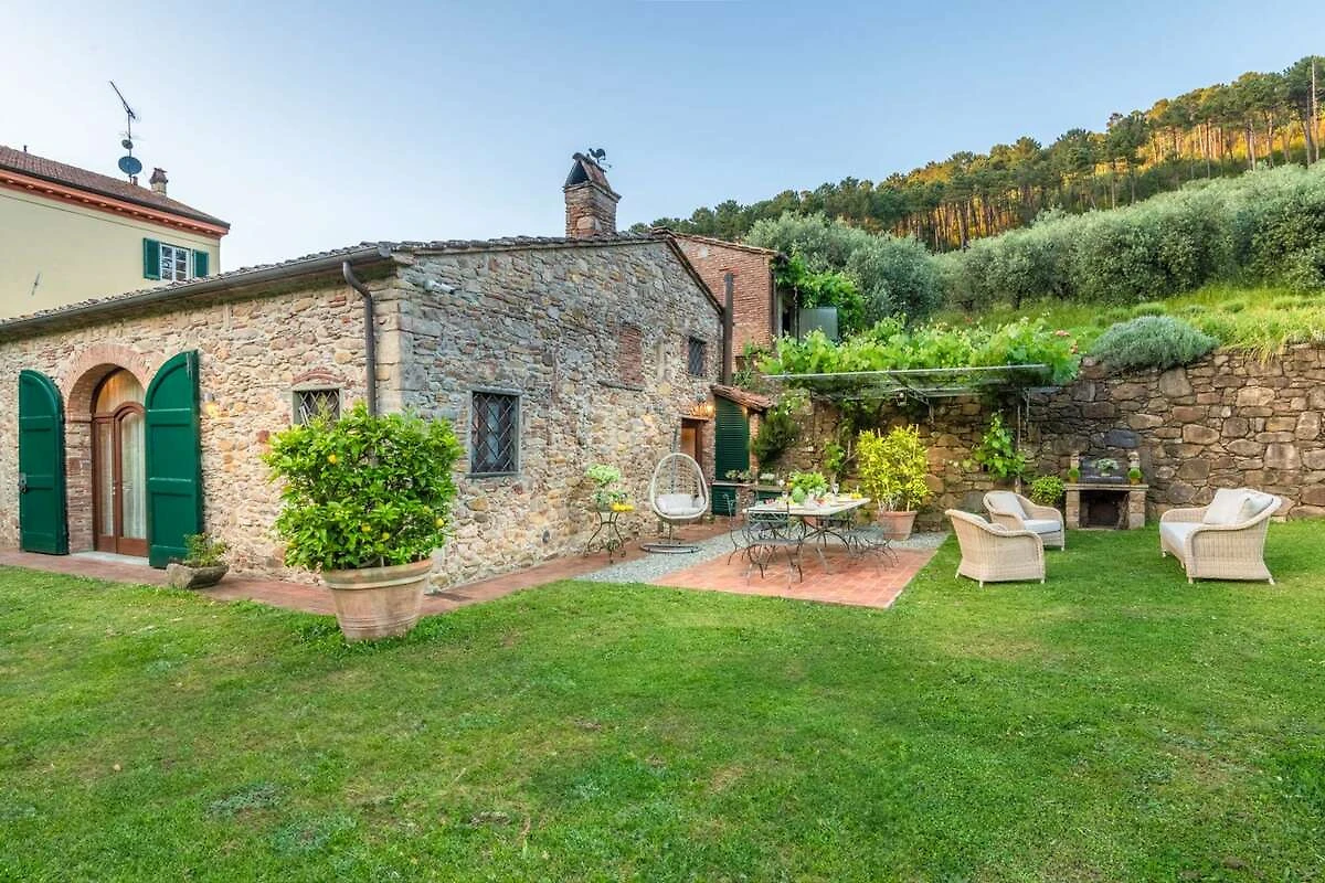 Eingebettet in die malerischen Hügel der Toskana bietet diese bezaubernde Ferienvilla ihren Gästen einen ruhigen Rückzugsort inmitten der Schönheit der Natur. Umgeben von üppigen Zitronenbäumen und blühenden Gärten empfängt die Villa ihre Gäste mit ihrer charmanten, mit Efeu und leuchtenden Pflanzen geschmückten Fassade. Schon beim Eintreten spüren die Gäste die herzliche Einladung eines märchenhaften Rückzugsortes, der darauf wartet, erkundet zu werden, wo jeder Winkel rustikale Eleganz und zeitlosen Charme ausstrahlt.