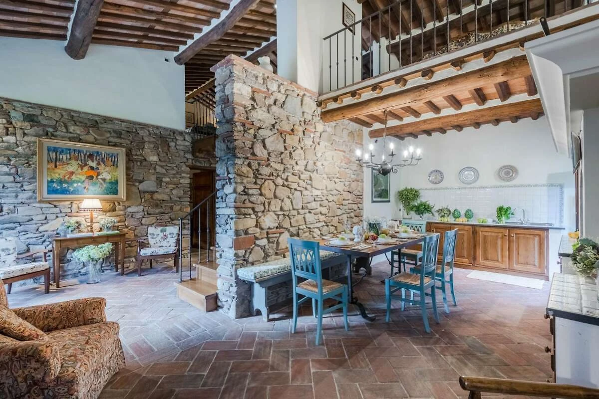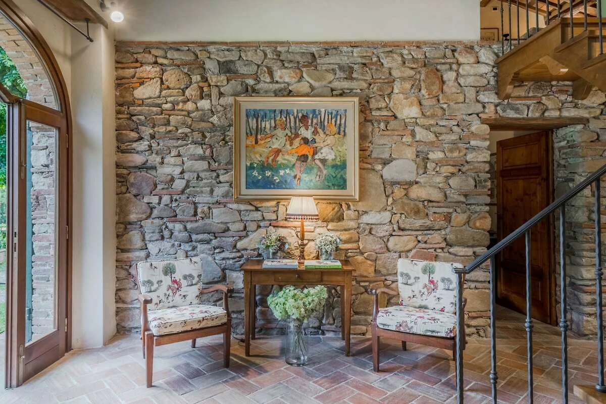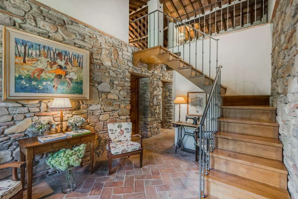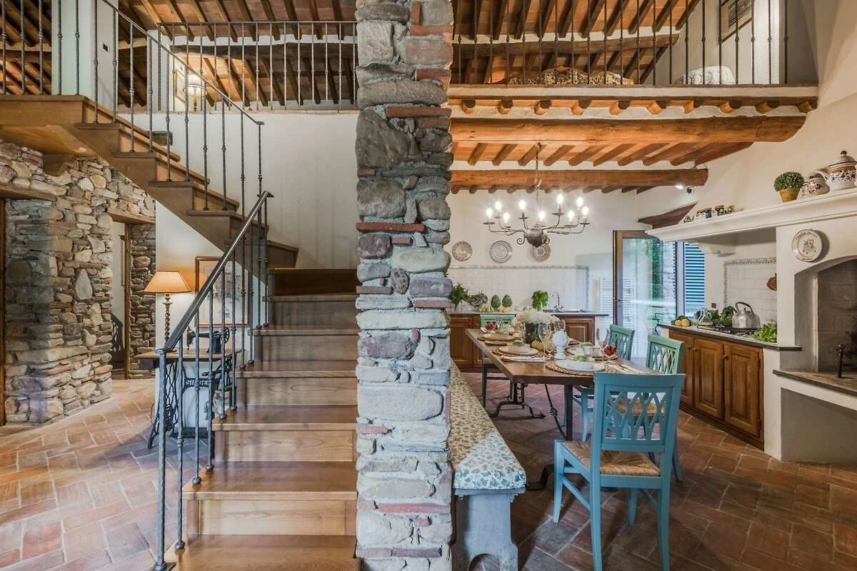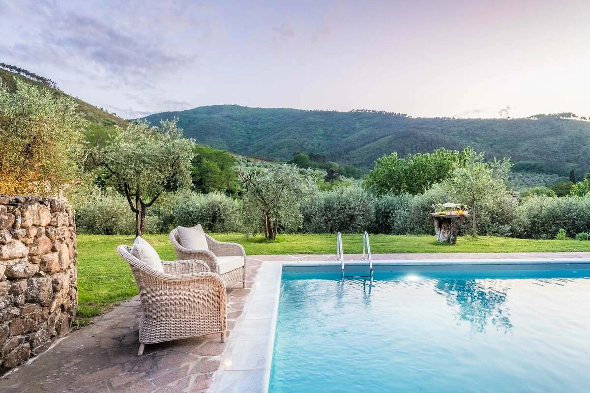 Eingebettet in die malerischen Hügel der Toskana bietet diese bezaubernde Ferienvilla ihren Gästen einen ruhigen Rückzugsort inmitten der Schönheit der Natur. Umgeben von üppigen Zitronenbäumen und blühenden Gärten empfängt die Villa ihre Gäste mit ihrer charmanten, mit Efeu und leuchtenden Pflanzen geschmückten Fassade. Schon beim Eintreten spüren die Gäste die herzliche Einladung eines märchenhaften Rückzugsortes, der darauf wartet, erkundet zu werden, wo jeder Winkel rustikale Eleganz und zeitlosen Charme ausstrahlt.