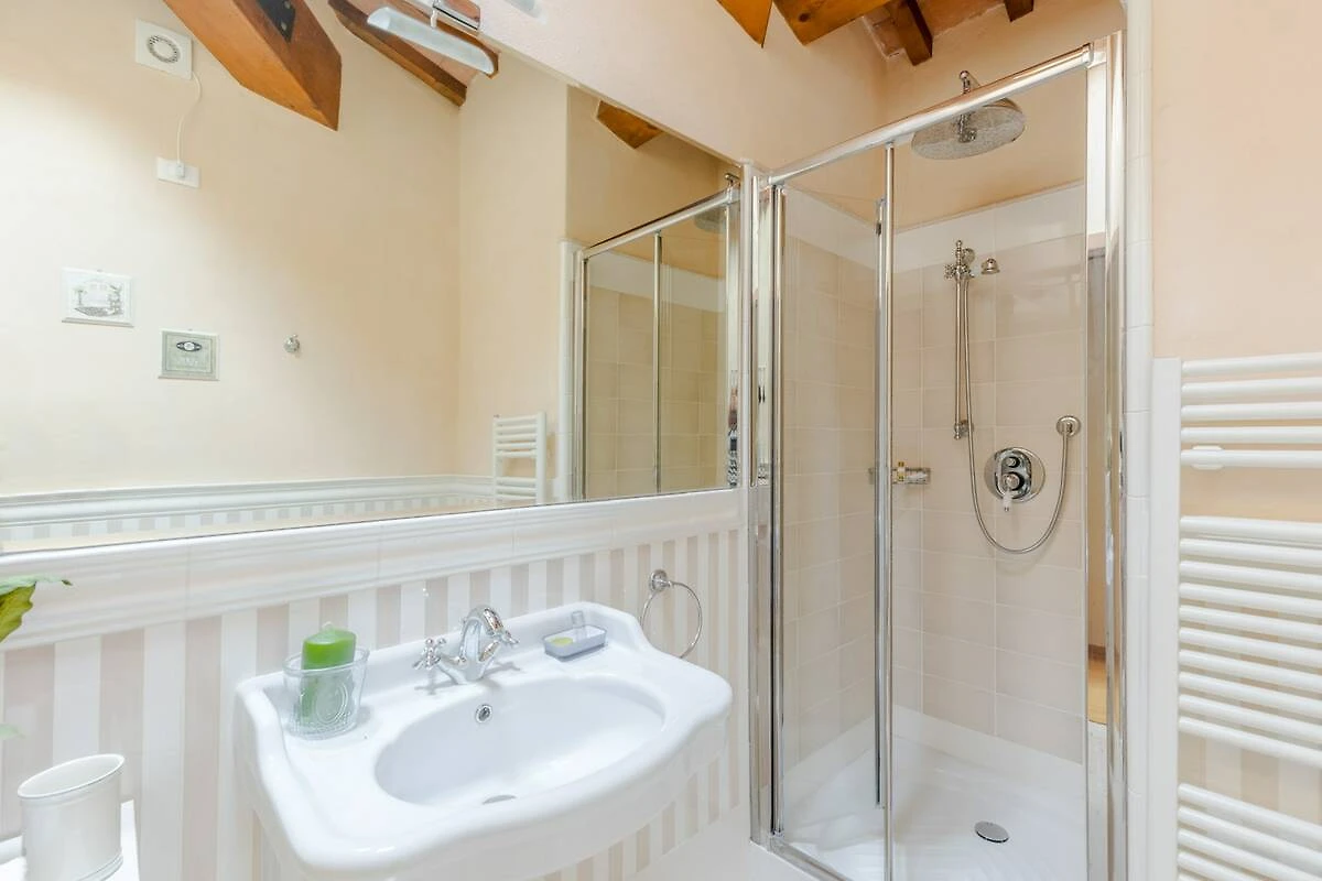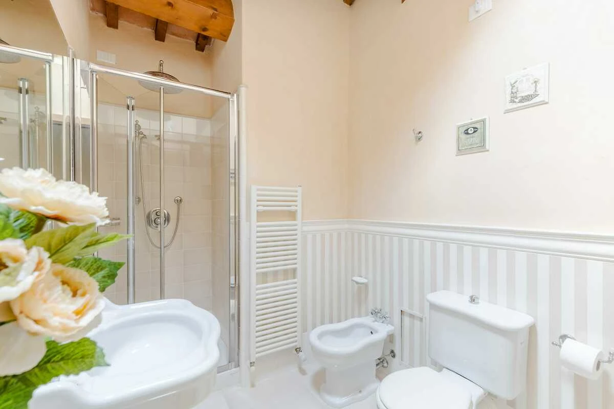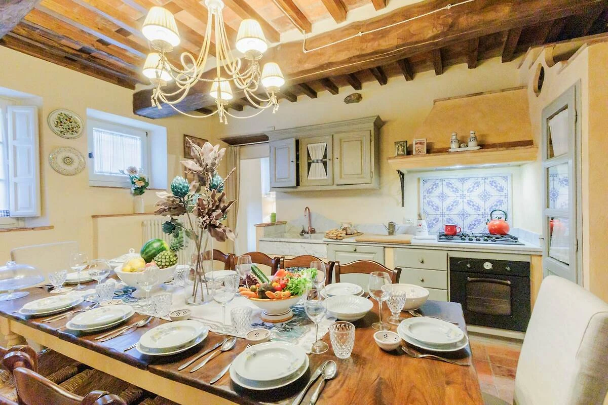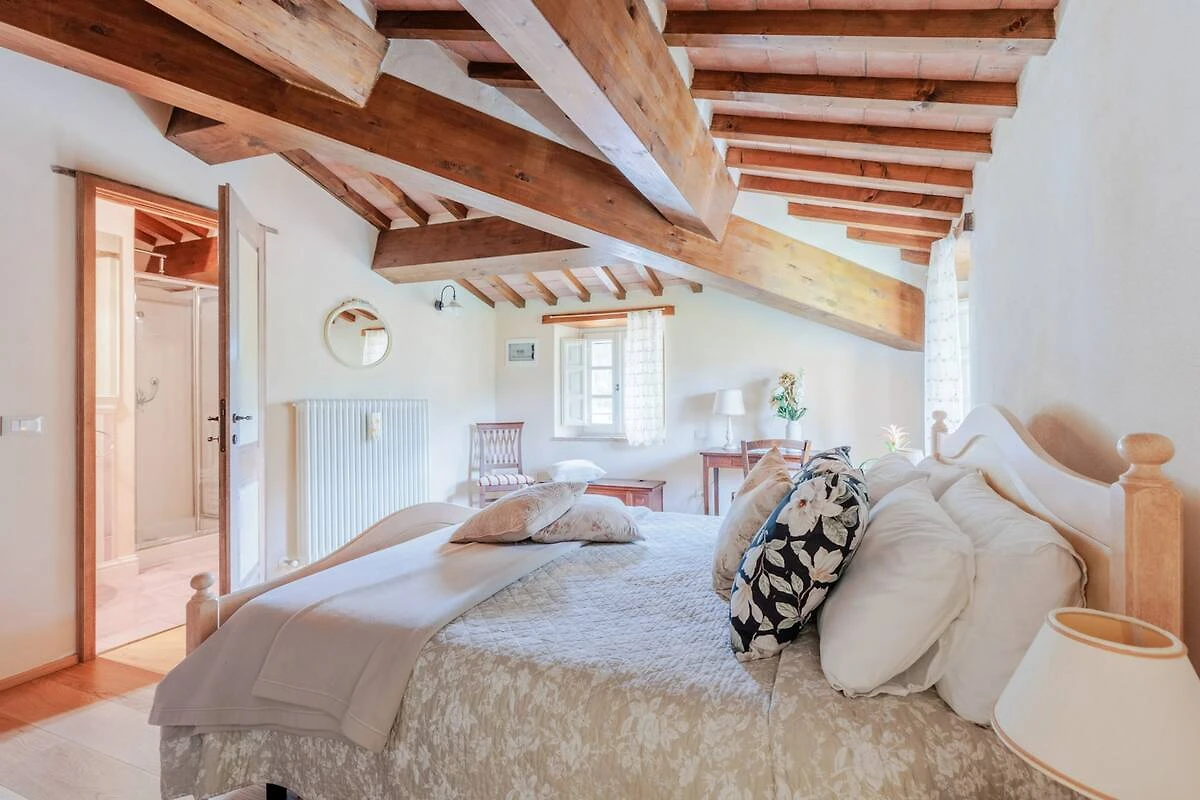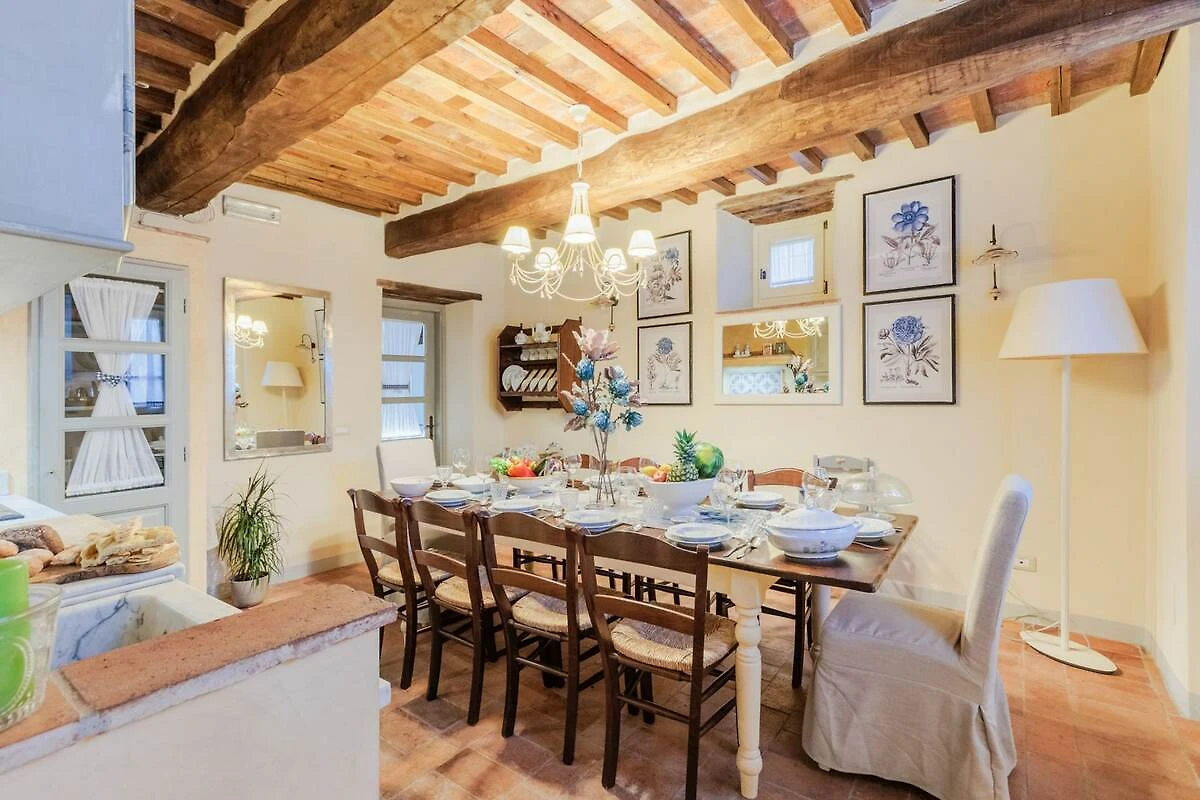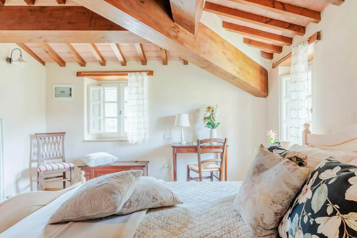 Eingebettet im malerischen Dörfchen Sant’Andrea di Compito, bietet Ihnen die Dimora delle Camelie eine ruhige Atmosphäre voller mittelalterlichem Charme. Das Dorf ist berühmt für seine jährliche Kamelienblüte, eine Anspielung auf die historischen Handelsbeziehungen mit Japan im frühen 19. Jahrhundert. Schlendern Sie bei Sonnenaufgang oder Sonnenuntergang durch die mittelalterlichen Straßen und entdecken Sie jahrhundertealte Villen, charmante Quellen und wunderschöne Landschaften. Das pulsierende Zentrum von Lucca erreichen Sie nach nur 9 km (ca. 15 Minuten) mit dem Auto. Diese Villa bietet moderne Annehmlichkeiten wie WLAN, Fernseher und Klimaanlage in jeder der vier Schlafzimmersuiten mit Doppelbetten und eigenem Bad. Da die Eigentümer in der Nähe auf dem Heuboden wohnen und einen gemeinsamen Garten nutzen, erleben Sie eine herzliche, gemeinschaftliche Atmosphäre. Parkplätze sind bequem 1–2 Gehminuten vom Haus entfernt. Während jedes Schlafzimmer klimatisiert ist, herrscht im Wohnbereich im Erdgeschoss eine angenehme Luft, sodass Sie die Schönheit der toskanischen Landschaft in vollen Zügen genießen können.