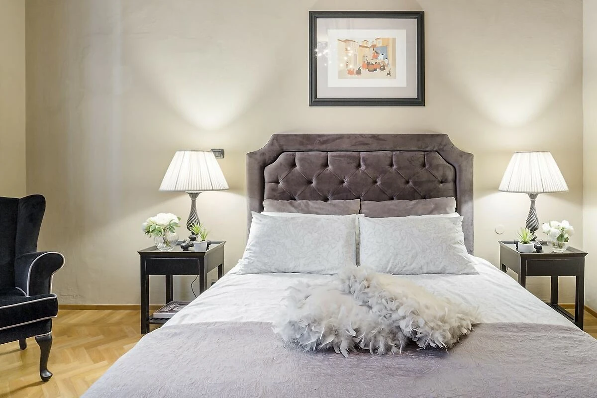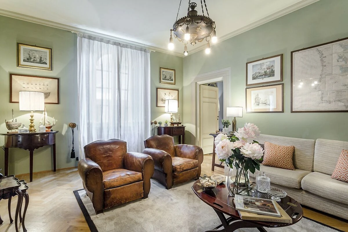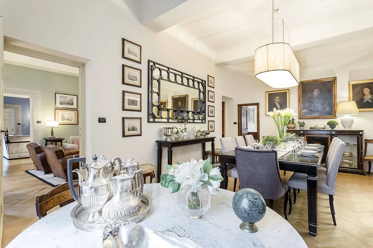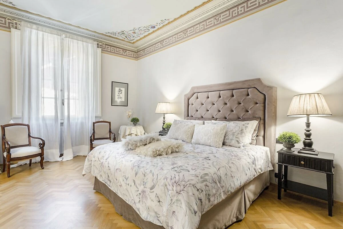 Die Wohnung verbindet harmonisch die Eleganz ihres architektonischen Erbes mit modernem Komfort. Merkmale wie Deckenfresken und ein Marmorkamin erinnern an die reiche Vergangenheit der Stadt, während moderne Annehmlichkeiten wie Kabel-TV, WLAN und Klimaanlage einen komfortablen Aufenthalt gewährleisten. Das Arbeitszimmer bietet den idealen Platz zum Arbeiten von zu Hause aus, während die gut ausgestattete Küche mit Geschirrspüler die stressfreie Zubereitung von Mahlzeiten ermöglicht und so die gemeinsame Zeit am großen Esstisch mit Freunden und Familie entspannt gestaltet.