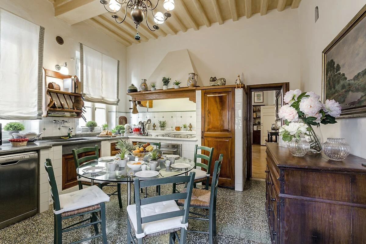 Gäste können die traditionelle Pracht des Apartments genießen, die durch Muranoglas-Kronleuchter und reich verzierte Teppiche unterstrichen wird, und gleichzeitig das raffinierte Flair moderner Möbel schätzen. Die Lage lädt dazu ein, Luccas pulsierendes Leben zu erkunden – von abendlichen Puccini-Konzerten in der nahegelegenen Basilika San Giovanni bis hin zu einem Spaziergang entlang der ikonischen Renaissance-Gemäuer. Dank der vielfältigen gastronomischen Einrichtungen, darunter Restaurants am Kanal und malerische Piazzas mit lokalen Weinen und Snacks, verspricht das Erlebnis ein angenehmes und unvergessliches Erlebnis. Bitte beachten Sie, dass sich das Apartment im zweiten Stock befindet und über keinen Aufzug verfügt, was Ihrem Toskana-Urlaub eine charmante und zugleich authentische Note verleiht.