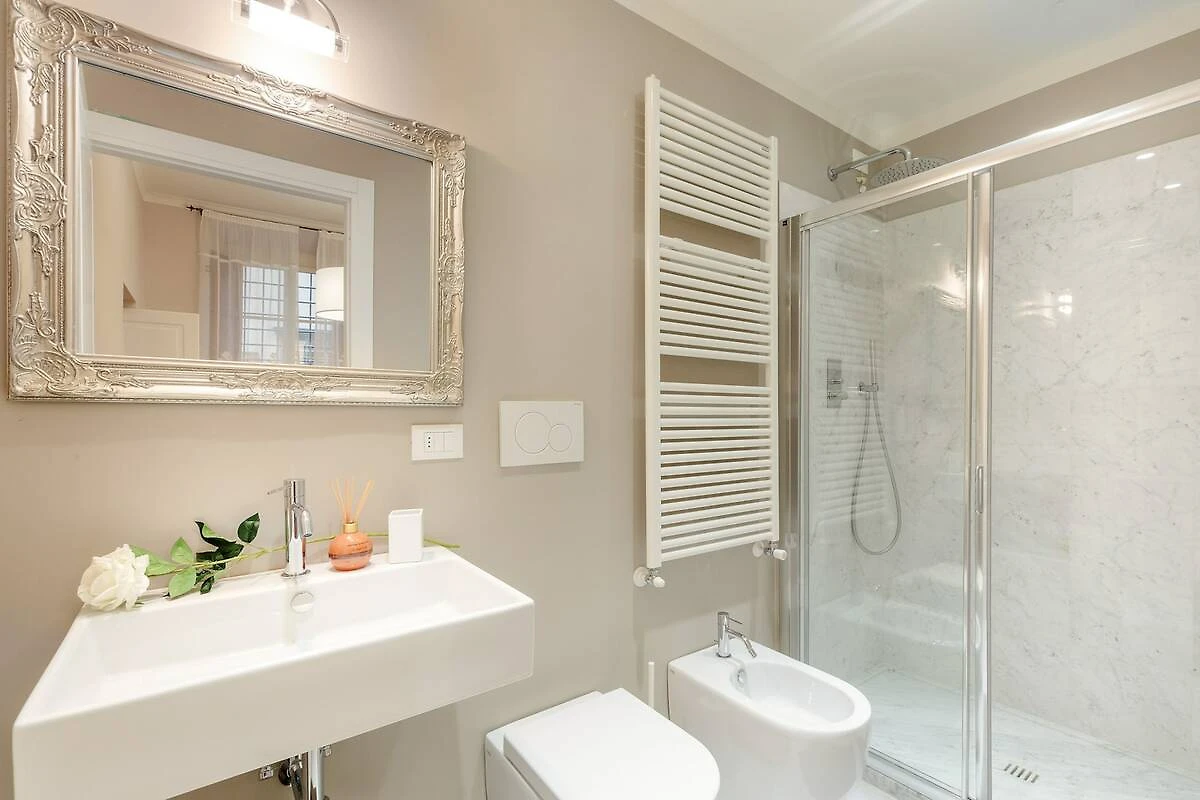 Betreten Sie einen durchdacht gestalteten Raum mit hohen Decken und allen modernen Annehmlichkeiten, darunter eine voll ausgestattete Küche mit allen wichtigen Geräten und reichlich Kochutensilien. Zuverlässiges Highspeed-WLAN und Klimaanlage tragen zum Komfort der Wohnung bei. Die Wohnung verfügt über einen einladenden Eingangsbereich, ein gemütliches Wohnzimmer, ein Doppelzimmer mit eigenem Bad, ein zweites Doppelzimmer und ein zusätzliches Badezimmer mit Dusche. Die wichtigsten Sehenswürdigkeiten sind nur fünf Gehminuten entfernt. Diese zentrale Oase bietet Ihnen die Möglichkeit, in die reiche Geschichte und Kultur Luccas einzutauchen und gleichzeitig einen ruhigen Rückzugsort zum Entspannen und Erholen zu finden.