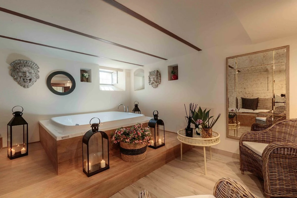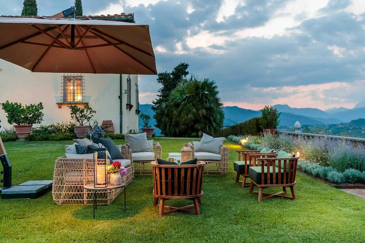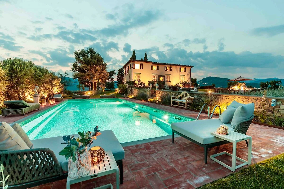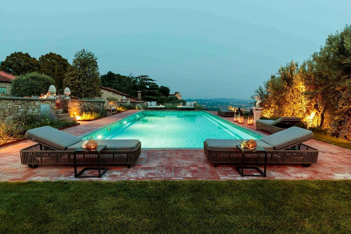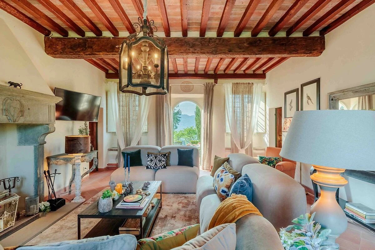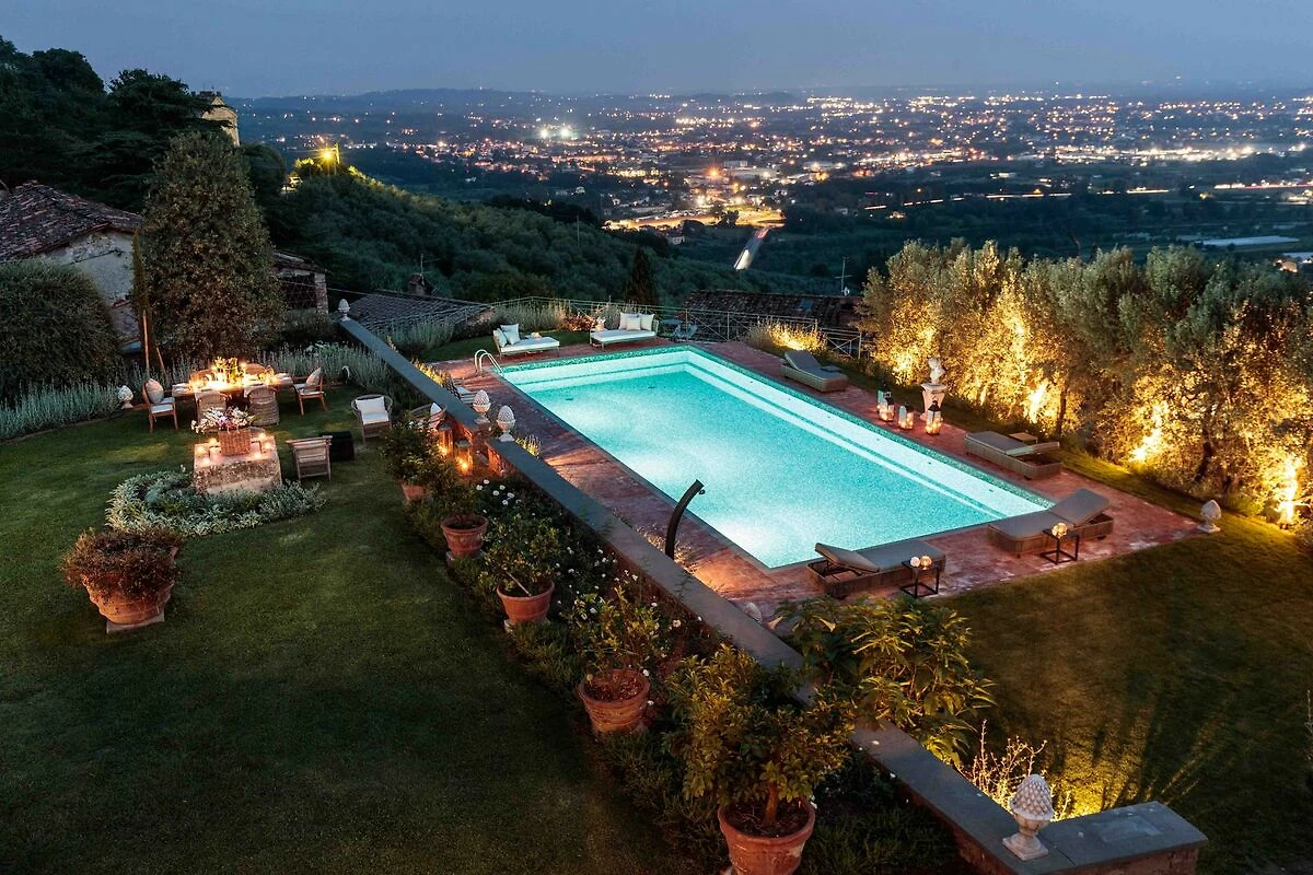 If your dreams of Tuscany feature rolling hills, olive groves, quaint farmhouses and a touch of modern luxury, look no further than VILLA IL CASTELLO. Nestled into olive groves with views of Lucca in the distance, the villa has all the charm of rural Tuscany but makes a convenient base for exploring the area. And although the six-bedroom Villa was restored in 2020 to feature perks like its own Spa, its architecture is still beautifully traditional. Get a glimpse of daily life in Italy as you stroll the villa’s garden, relax on the terrace, dip into the panoramic swimming pool, grill local produce on the barbecue and sip wine at the outdoor dining area while gazing at the far-off medieval towers of Lucca. Whether you’ve been biking in the countryside or just sampling the local gelato, treat yourself to a session in the villa’s indoor jacuzzi at candlelight and an evening in front of the antique chimneypiece watching your favourite movies in multiple languages. Though you can see the past of VILLA IL CASTELLO in its traditional brick floors, beamed ceilings and fireplaces, the interiors feel bright and airy thanks to updated furniture and crisp light blue and white paint. Let yourself be charmed by the living room’s geometric-patterned rug and elaborately carved sofa table as you sink into the sleek taupe sectional. A long table, eclectic chairs and a contemporary chandelier make the dining room particularly inviting, and the fully equipped kitchen has a central breakfast bar perfect for gathering around. The bedrooms at VILLA IL CASTELLO have the same intriguing combination of soft, traditional earth-toned walls and furnishings with a slightly modern edge. Plan to fly into the Pisa airport, which is only 35 mins from the Villa. The museums, cafes and shopping in Lucca are just under 7 km from the property while groceries, supermarket and restaurants are just 2 kms away, and if it’s not a vacation without Thermal Baths, you’re in luck: Bagni di Pisa is only 15 km away. Take a day trip to San Gimignano, Pisa, Florence, Pistoia, Montecatini Terme, Cinque Terre, Volterra, Bolgheri, Forte dei Marmi, Viareggio or continue your Italian getaway in Rome, 278 km away. The villa is fully private, and the visible houses at the borders are empty rural buildings. The number of guests must meet the maximum occupancy indicated, children included, and no additional guests are allowed. LAY OUT: On the ground floor spacious entrance hall, dining area, Kitchen (with stairs leading to the basement and the first floor) Twin bedroom with en-suite bathroom, single bedroom and main stairs Basement: one bathroom, Laundry room Room with a large Jacuzzi tub (Stairs leading up to the kitchen) First floor: 4 double bedrooms each one with its en-suite bathroom Included in the rental price: Final Cleaning Towels and linens Electricity Gas Water Internet Wifi High chair (upon request at booking) Babycot (upon request at booking) Not included in the rental price: Tourist tax: mandatory and required by the local municipality, where applicable. Midstay and/or weekly cleaning and change of towels and linens Baby cot's linens