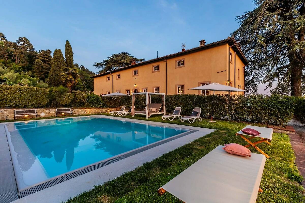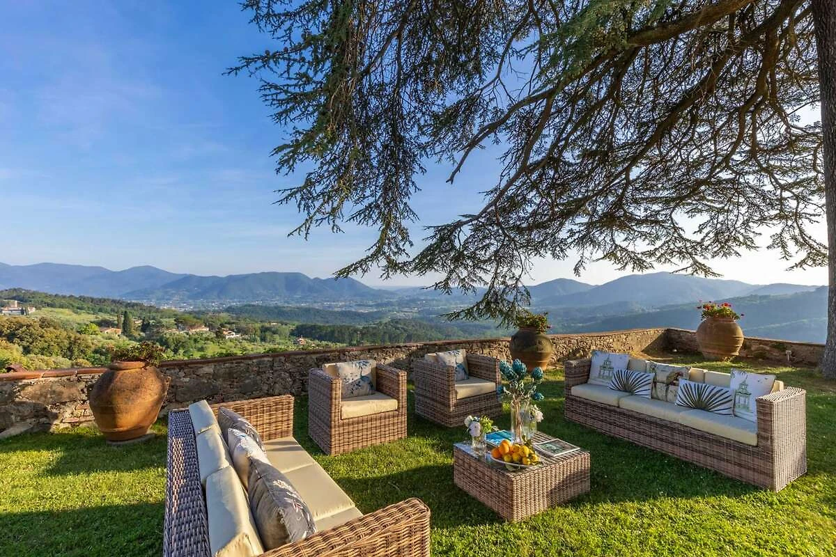 Eingebettet in die sanften Hügel oberhalb von Lucca ist die Villa Borbone ein ruhiger Rückzugsort, der toskanisches Erbe mit dezenter Eleganz verbindet. Inmitten eines Hektars gepflegter Gärten und Olivenhaine gelegen, bietet dieser restaurierte Teil einer Renaissancevilla aus dem 15. Jahrhundert einen atemberaubenden Blick auf die Skyline von Lucca, die umliegenden Hügel und die ferne Küste.