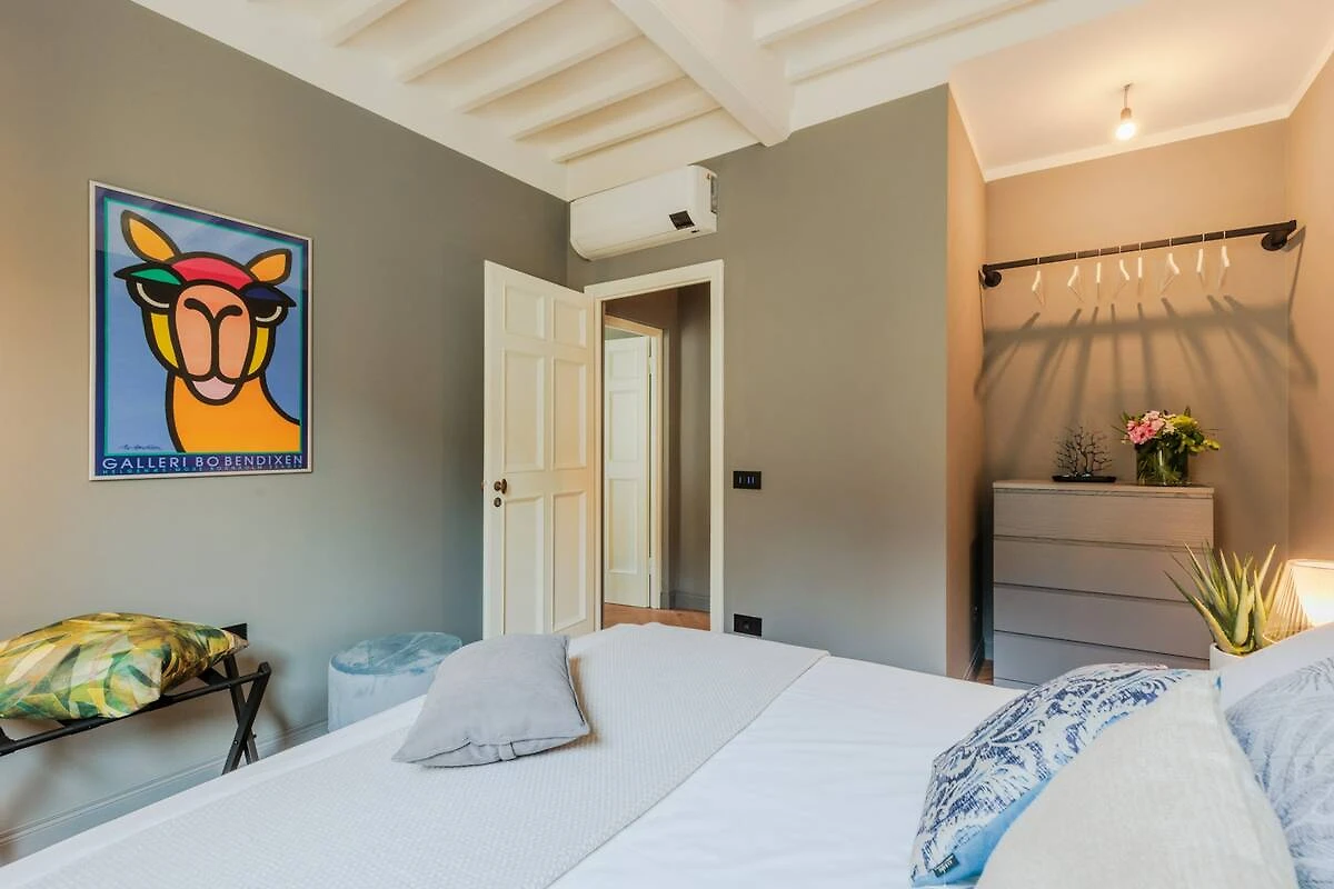 Jedes der beiden Doppelzimmer bietet Privatsphäre und Komfort, verfügt über ein eigenes Bad und bietet Blick über die Dächer. Die durchdachte Gestaltung der Wohnung für jede Jahreszeit macht sie im Sommer kühl und im Winter warm und damit das ganze Jahr über zu einem gemütlichen Rückzugsort. Die Atmosphäre ist insgesamt ruhig und bietet einen ruhigen Rückzugsort abseits des charmanten Treibens in Lucca.