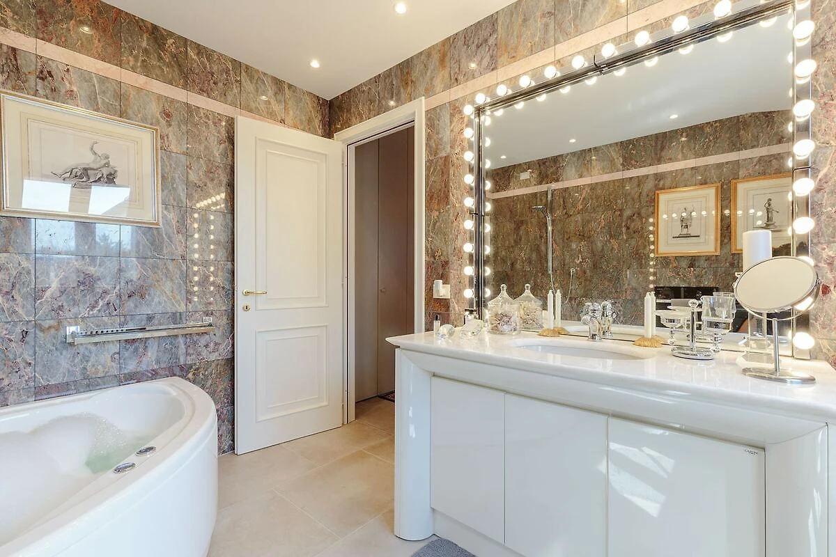 In der 4. Etage: (offene Küche(Wasserkocher, Toaster, Kaffeemaschine, Backofen, Mikrowelle, Spülmaschine, Kühl-/Gefrierkombination, ), Wohn/Esszimmer(TV(Satellit, internationale TV-Kanäle), Esstisch, Sitzecke), Schlafzimmer mit Badezimmer(Doppelbett, Hottub), Schlafzimmer mit Badezimmer(Doppelbett, Dusche))