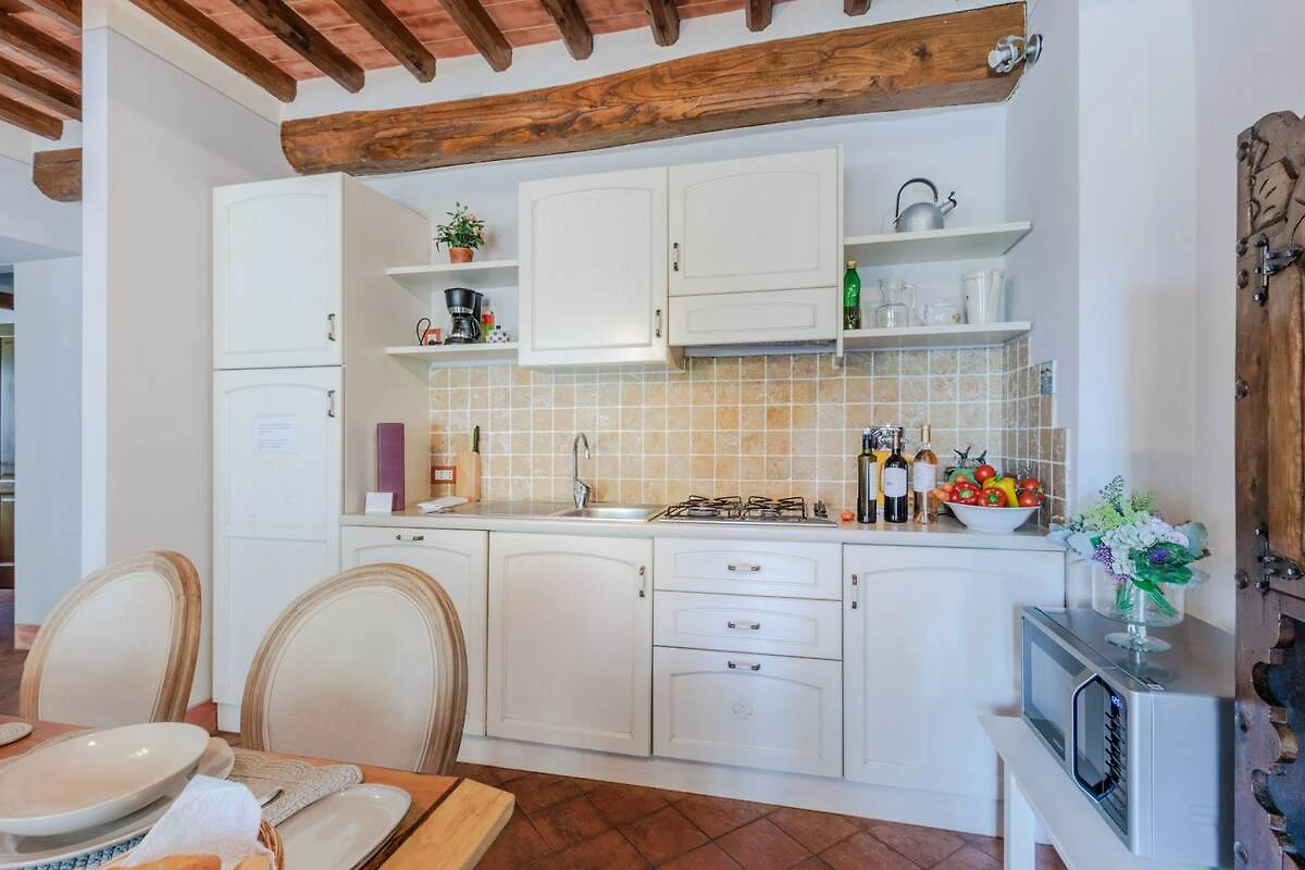 Das Elisa Farmhouse Apartment befindet sich im Erdgeschoss und verfügt über einen eigenen Garten. Es bietet einen einladenden Wohnbereich, eine Küche mit Essbereich, ein Doppelzimmer, ein Zweibettzimmer und zwei moderne Badezimmer. Mit Klimaanlage in allen Schlafzimmern, Zugang zu einer gemeinschaftlich genutzten Waschküche und Poolnutzung bietet es Charme und Komfort. Ob Sie lieber im eigenen Garten Wein aus eigenem Anbau genießen oder Tagesausflüge nach Florenz, Pisa oder in die Cinque Terre unternehmen – hier erleben Sie ein authentisches toskanisches Erlebnis.
