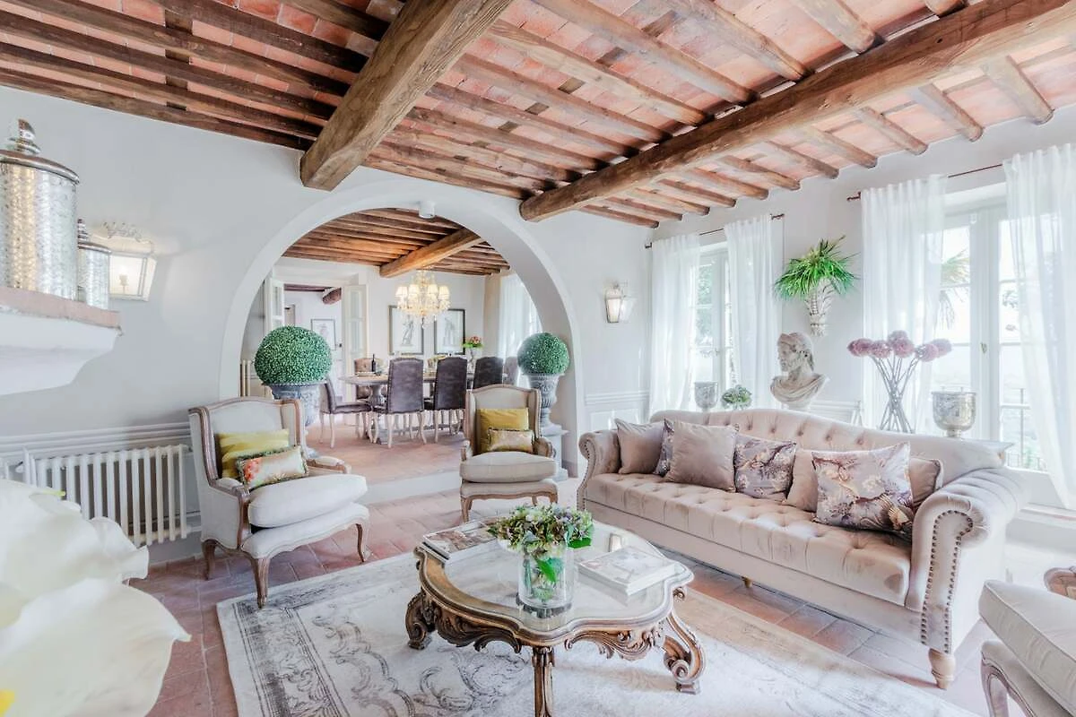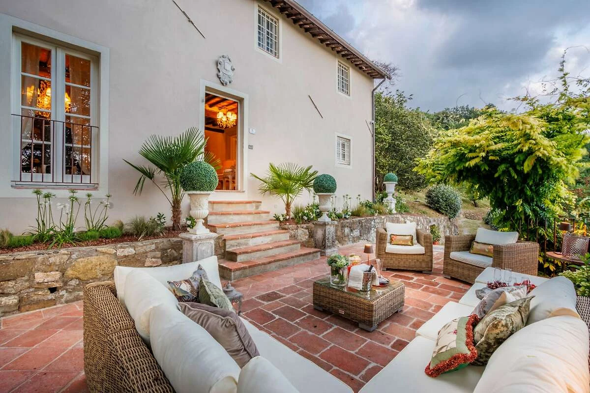 Üppige Vegetation lädt Sie ein, ausgedehnte, grüne Wälder zu umgeben. Weite Ausblicke auf die Stadt Lucca und die sanften Hügel der Toskana auf der Rückseite erwarten Sie an entspannten Sommertagen. In der Villa Lina kann die Zeit angehalten werden und Sie werden Ihr geschäftiges Leben leicht vergessen. Wenn bekannt ist, dass sich das Stendhal-Syndrom entwickelt, wenn man auf etwas überwältigend Schönes trifft, dann seien Sie vorsichtig, denn an diesem magischen Ort könnten Sie davon betroffen sein. Umgeben von einer großen Terrasse und einem attraktiven, dunkelblauen Infinity-Pool ist Villa Lina einfach ein Synonym für opulentes Wohnen. Der gut ausgestattete Poolbereich verfügt über eine Außenküche und einen Essbereich mit Pavillon, Tisch und Stühlen, wo Sie Ihre Mahlzeiten begleitet vom Gesang der Zikaden vor einer spektakulären Aussicht genießen können. Nachts werden Grillen und Lichter der Stadt in der Ferne das Freizeitprojekt begleiten. Mit mehreren Ecken zum Ausruhen und zwei Essbereichen im Freien haben Sie viele Möglichkeiten, Ihre Zeit mit Ihren Lieben zu verbringen und gleichzeitig etwas Privatsphäre zum Lesen, Schreiben oder sogar Arbeiten zu bewahren. Die raffinierte, moderne Inneneinrichtung vermittelt eine inspirierende Atmosphäre und macht es zu einem perfekten Zufluchtsort für diejenigen, die ein stilvolles Zuhause suchen. Helle Möbel bilden einen perfekten Kontrast zu den Balkendecken und Details verstärken den Reiz des ländlichen Flairs. Die Lage in einer der attraktivsten Gegenden und ganz in der Nähe der Stadtmauern von Lucca ermöglicht Ihnen einfache Tagesausflüge zu den wichtigsten Städten der Toskana. Lucca mit seinem lebhaften Stadtzentrum ist nur 20 Autominuten entfernt aber in unmittelbarer Nähe finden Sie einige der renommiertesten lokalen Restaurants, darunter Weingüter und Weingüter. Es gibt eine gute WLAN-Verbindung mit Starlink. Lassen Sie den Stress hinter sich und bereiten Sie Ihre Taschen vor. Sie haben Ihr Ziel gefunden. LAYOUT ERDGESCHOSS: Geräumige Küche mit Kochinsel; großes Esszimmer, Wohnzimmer mit Fernseher und Kamin; kleines Badezimmer; kleine Veranda. ERSTER STOCK: 1 Doppelzimmer mit eigenem Bad mit Dusche; 1 Doppelzimmer mit Bad mit Dusche gleich nebenan; 1 Doppelzimmer und 1 Zweibettzimmer mit gemeinsamem Bad mit Dusche. WÄSCHERAUM draußen, im hinteren Teil des Hauses, mit Waschmaschine und Trockner. Aufgrund der Besonderheit der Landschaft und Lage der Villa und des Pools ist die Unterkunft nicht für Kinder unter 12 Jahren oder Personen mit Gehbehinderungen geeignet. Wir empfehlen auch beim Betreten und Verlassen des Pools äußerste Vorsicht, wie auf den Bildern zu sehen ist. Die Treppen sind steil und ohne Schutz. Included in the rental price: Final Cleaning Towels and linens Electricity Gas Water Internet Wifi High chair (upon request at booking) Babycot (upon request at booking) Not included in the rental price: Tourist tax (where mandatory and required by local municipality) Midstay and/or weekly cleaning and change of towels and linens Baby cot's linens