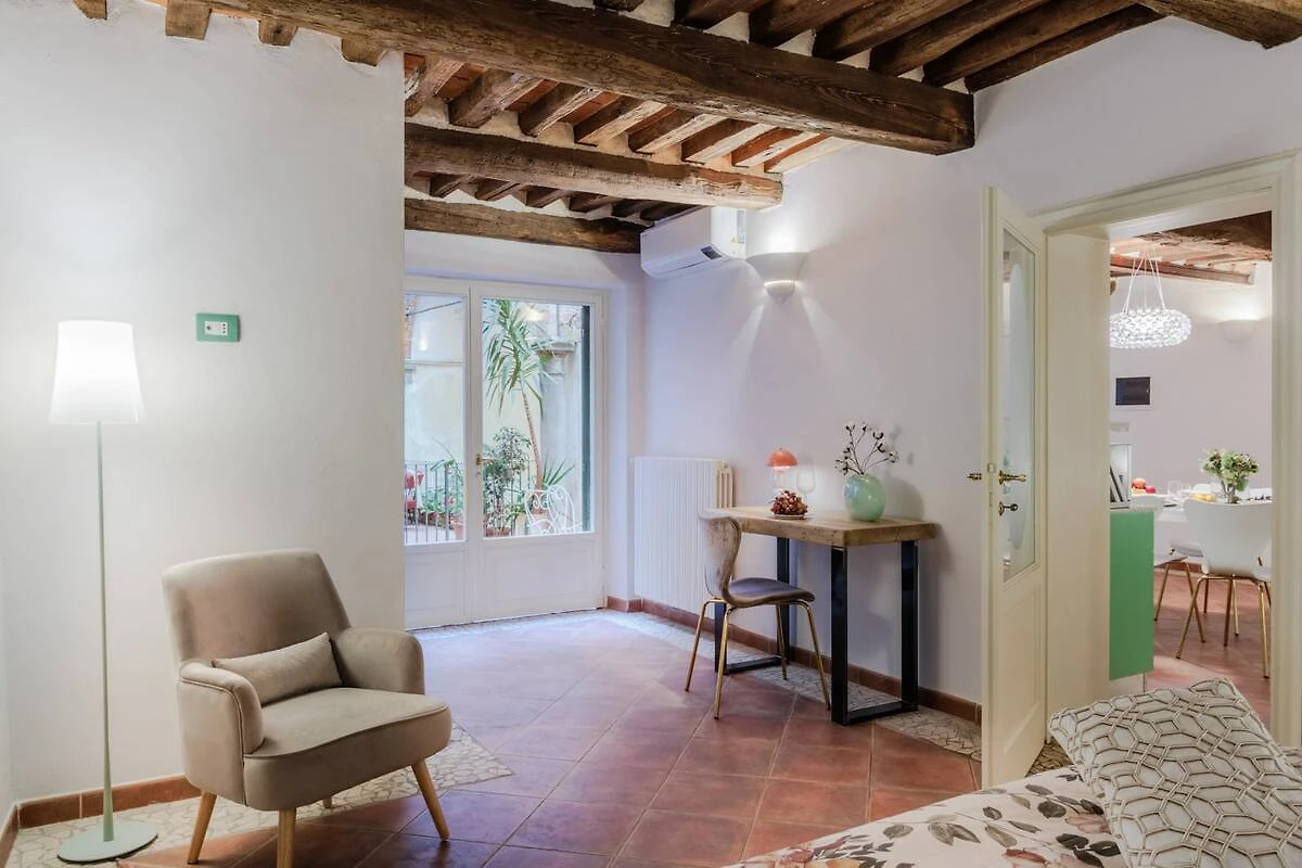 Eingebettet in die historischen Mauern von Lucca bietet dieses moderne, 100 m² große Apartment eine einzigartige Mischung aus moderner Eleganz und historischem Charme. Das Apartment ist für Reisende konzipiert, die Komfort und Bequemlichkeit suchen. Es verfügt über einen privaten Innenhof, der als ruhiger Rückzugsort vom geschäftigen Treiben der Stadt dient. Ob Sie unter dem toskanischen Himmel Wein trinken oder einen ruhigen Morgenkaffee genießen – dieser ruhige Außenbereich lädt zum Entspannen in absoluter Privatsphäre ein.