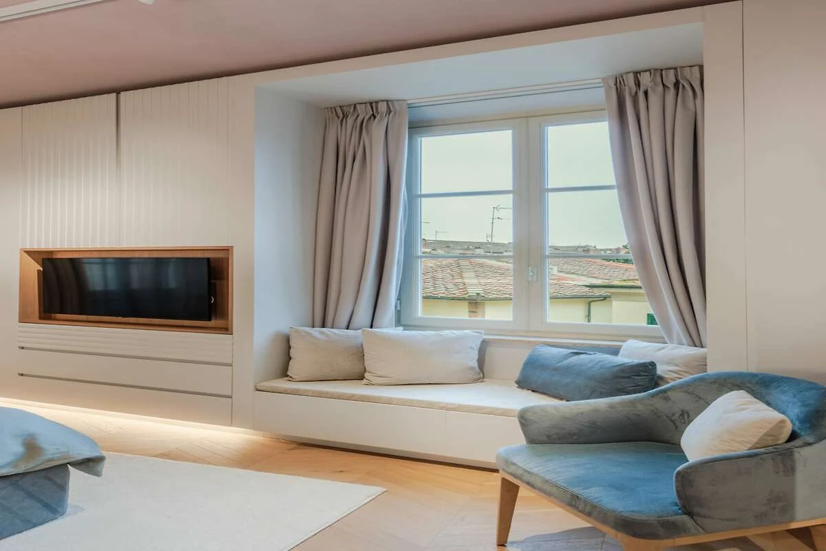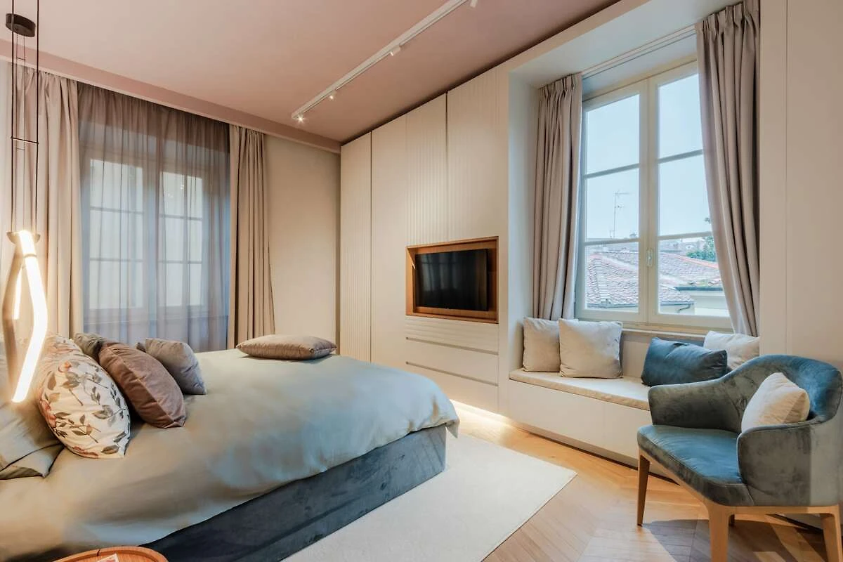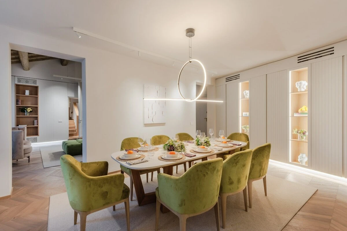Tauchen Sie ein in eine Welt, in der die Eleganz der Renaissance auf moderne Raffinesse trifft – im Casa Silvestro, einem sorgfältig renovierten Anwesen inmitten der historischen Mauern von Lucca. Dieses 235 m² große Apartment befindet sich im repräsentativen zweiten Stock eines Palastes aus dem 15. Jahrhundert – einst die königliche Botschaft des Königreichs Spanien – und bietet eine unvergessliche Mischung aus Geschichte, Komfort und Stil.